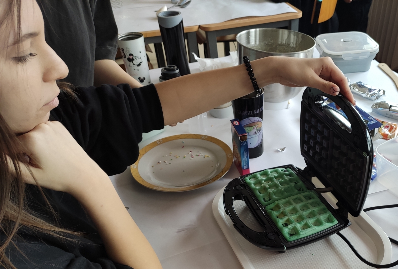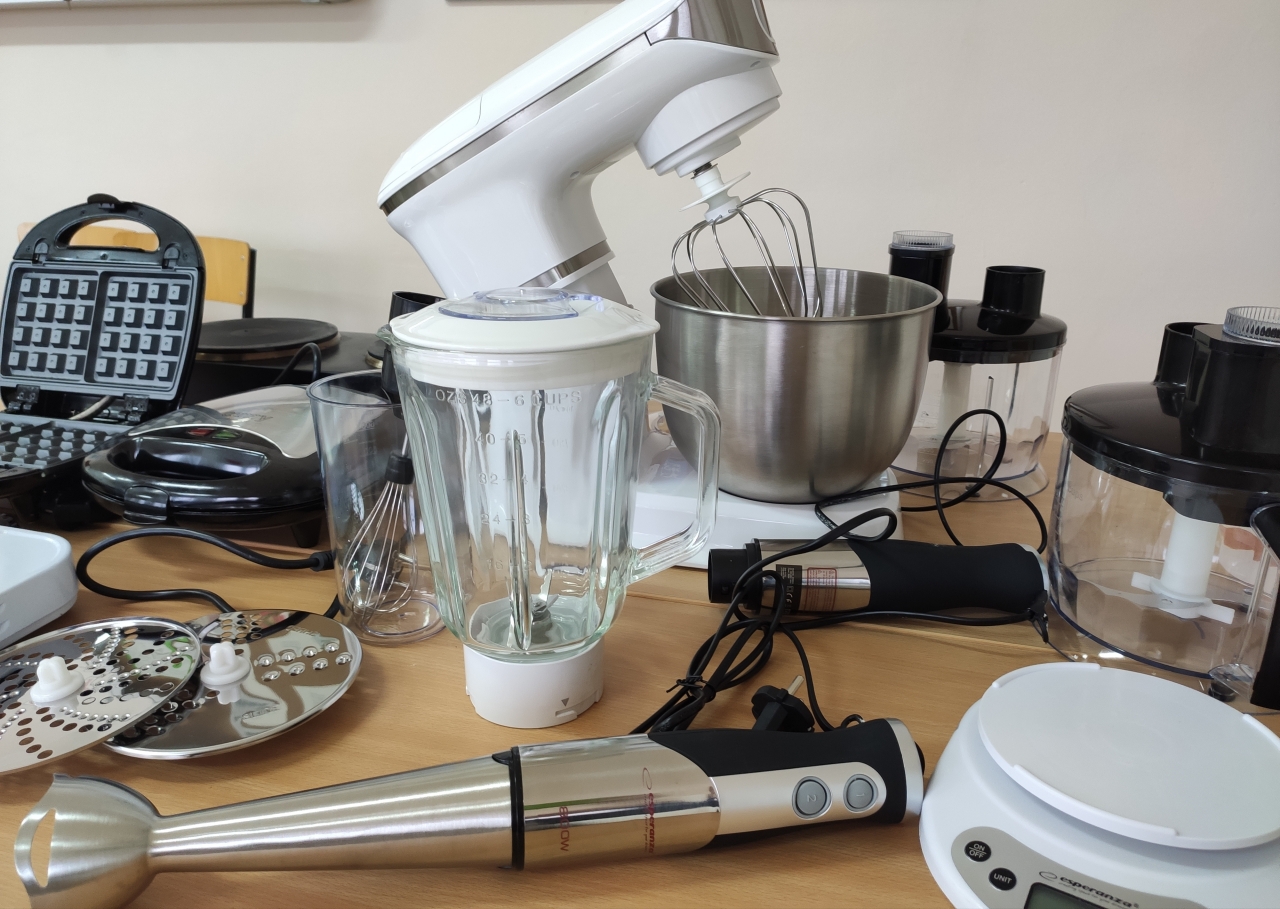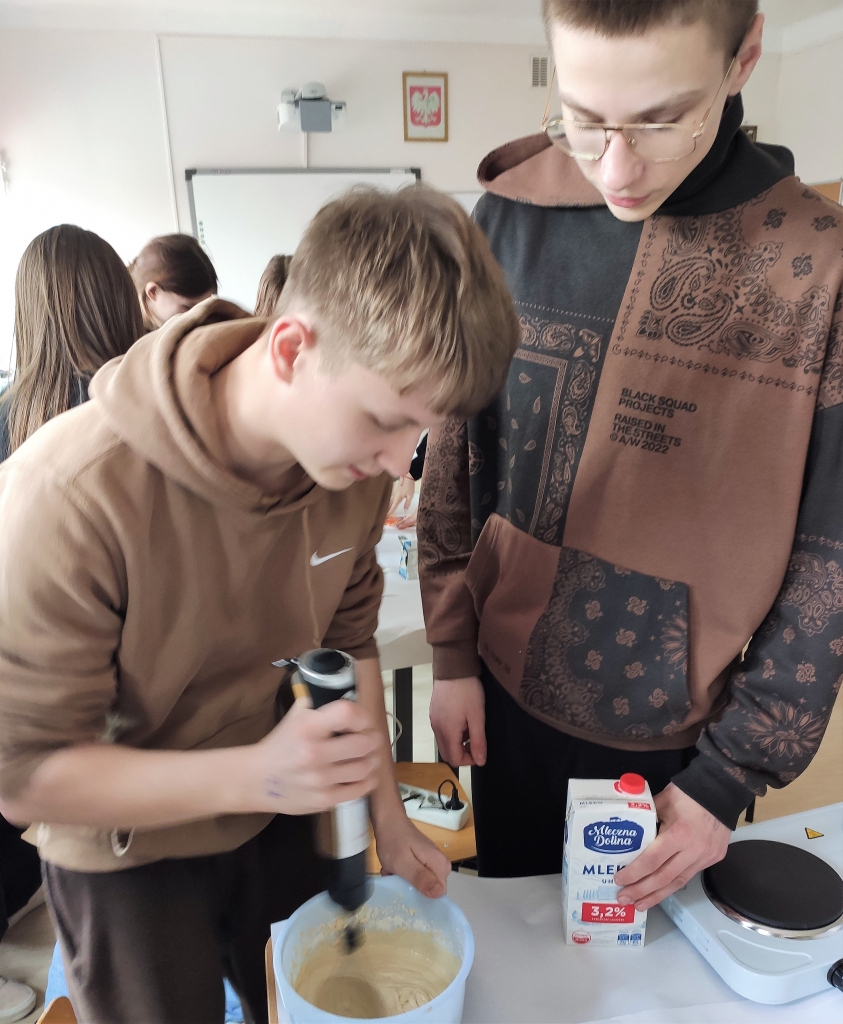 Uczniowie klasy 8 a i 8 b na lekcjach fizyki w zadaniach praktycznych wyznaczali pracę i moc prądu elektrycznego. Wykorzystując sprzęt AGD zakupiony w ramach realizowanego projektu #laboratoriaprzyszłości przygotowali desery (największą popularnością cieszyły się gofry z bitą śmietaną). Uczniowie wskazywali źródła energii elektrycznej i odbiorniki, analizowali formy energii na jakie jest zamieniana energia elektryczna. Odczytywali dane z tabliczek znamionowych, dokonywali pomiaru czasu pracy urządzeń i na ich podstawie wyznaczali pracę prądu. Przeliczając energię elektryczną wyrażoną w dżulach na kilowatogodziny obliczali szacunkowy koszt zużycia energii elektrycznej podczas pracy wykorzystywanych przez siebie urządzeń elektrycznych. Uczniowie przed i w trakcie zadań wykazali się dobrą organizacją pracy, nabywali umiejętności pracy zespołowej i dbania o porządek na stanowisku pracy zgodnie z zasadami bezpieczeństwa.