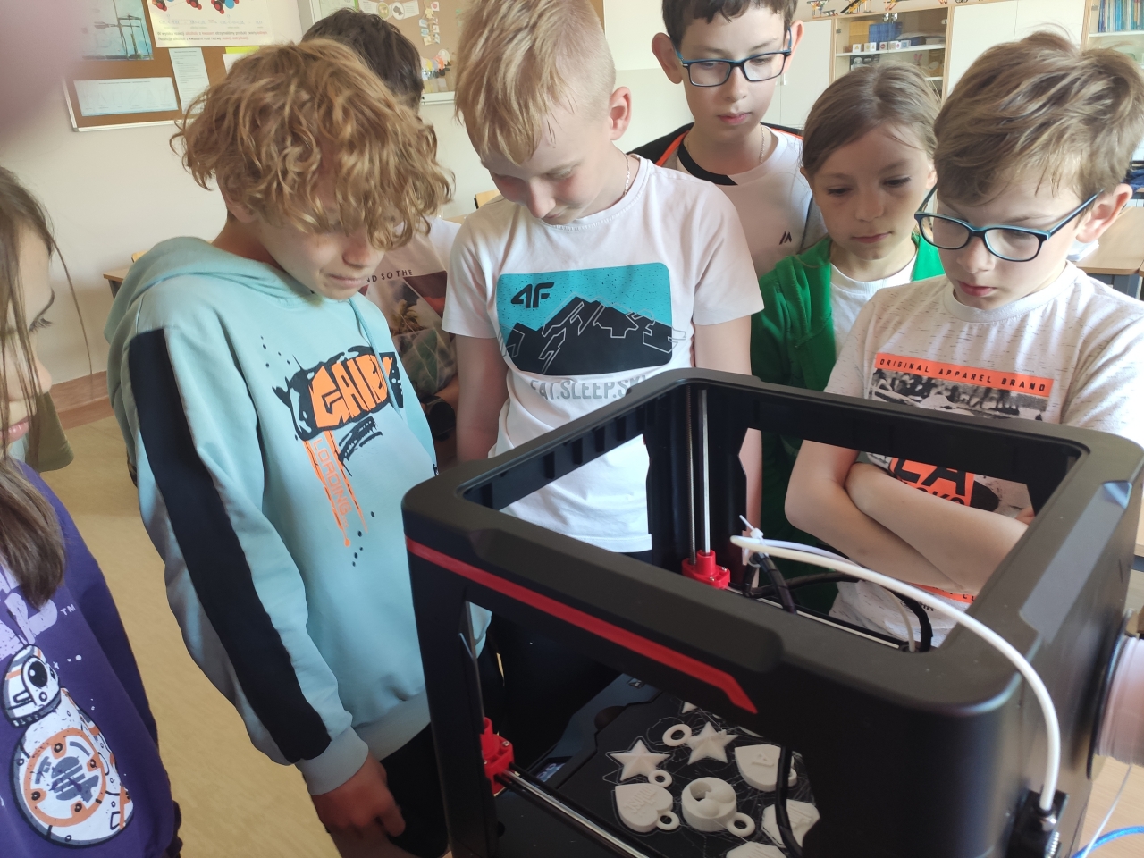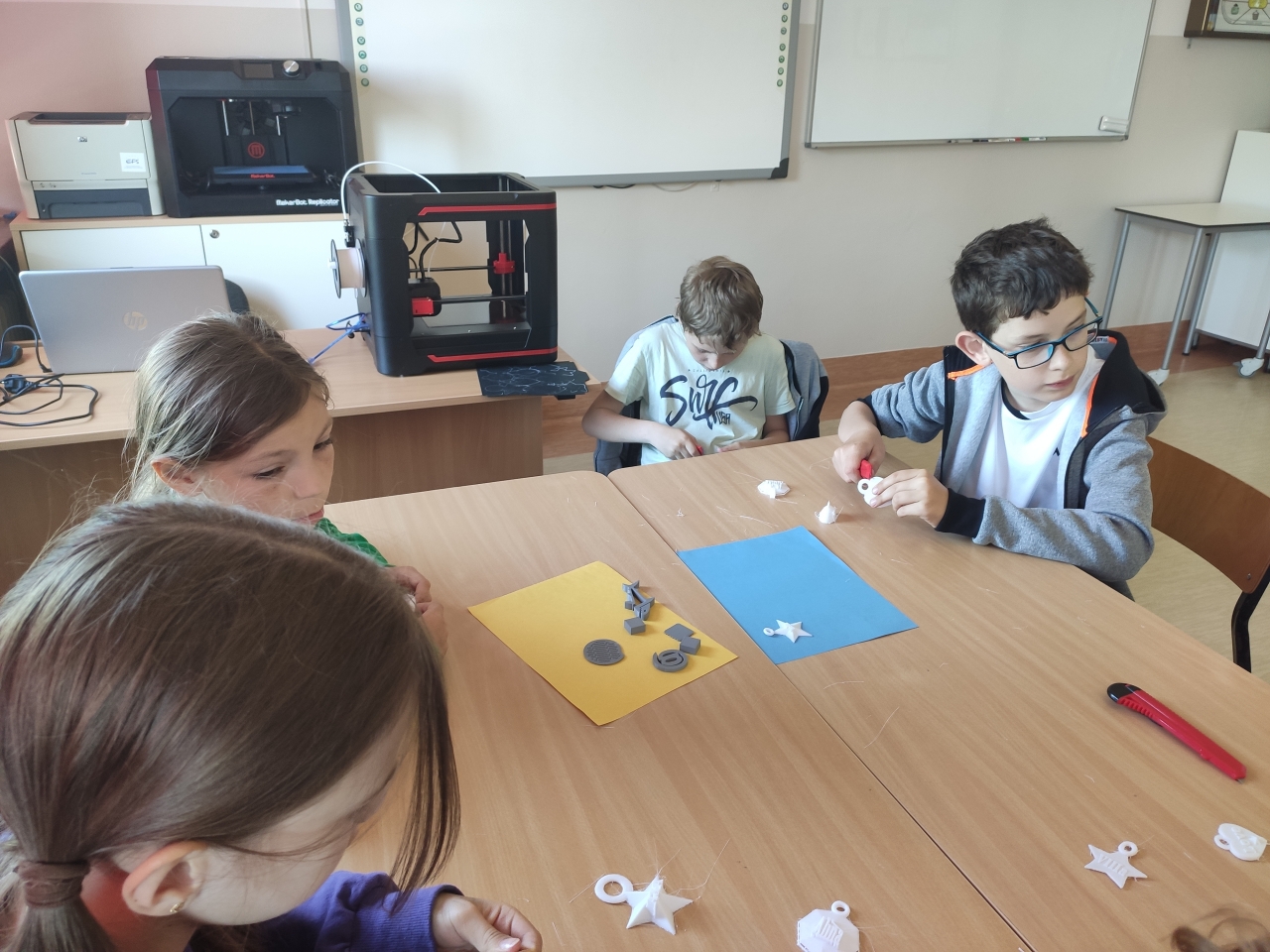 Uczniowie klas czwartych mieli okazję zaprojektować modele 3D breloków przy użyciu nowoczesnego oprogramowania oraz laptopa zakupionego w ramach projektu. Zapoznali się z podstawowymi zasadami projektowania modeli oraz z działaniem drukarek 3D, które szkoła posiada.