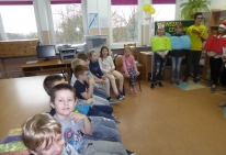 Starsi koledzy – członkowie aktywu bibliotecznego z kl. V a, VI a oraz VIII a przygotowali dla nowych czytelników krótką część artystyczną na temat poszanowania książek przez dzieci.
