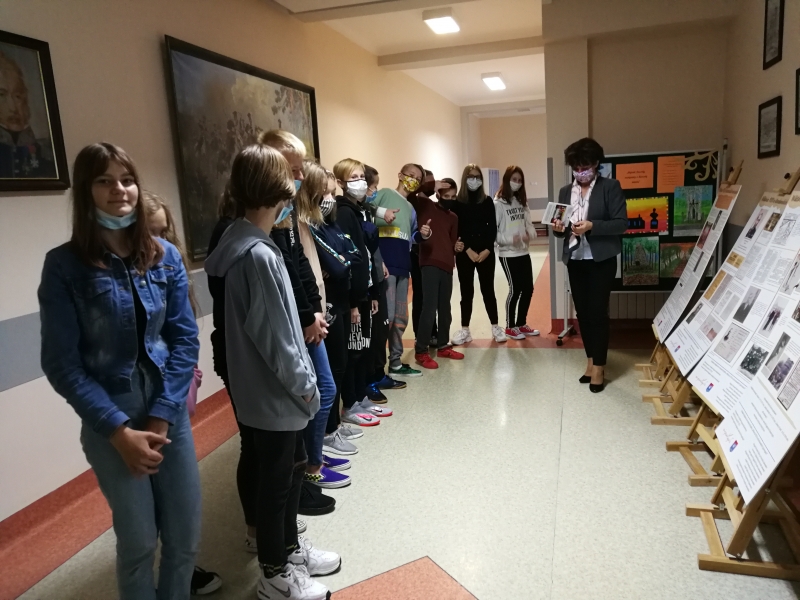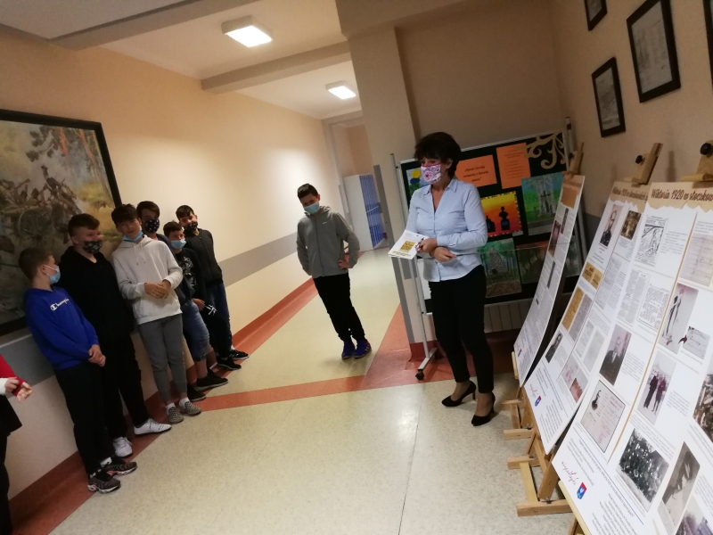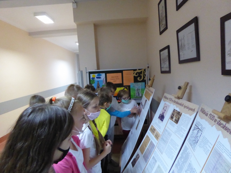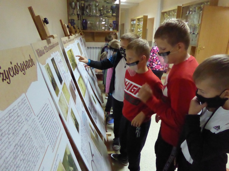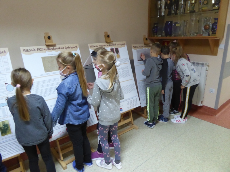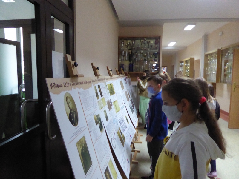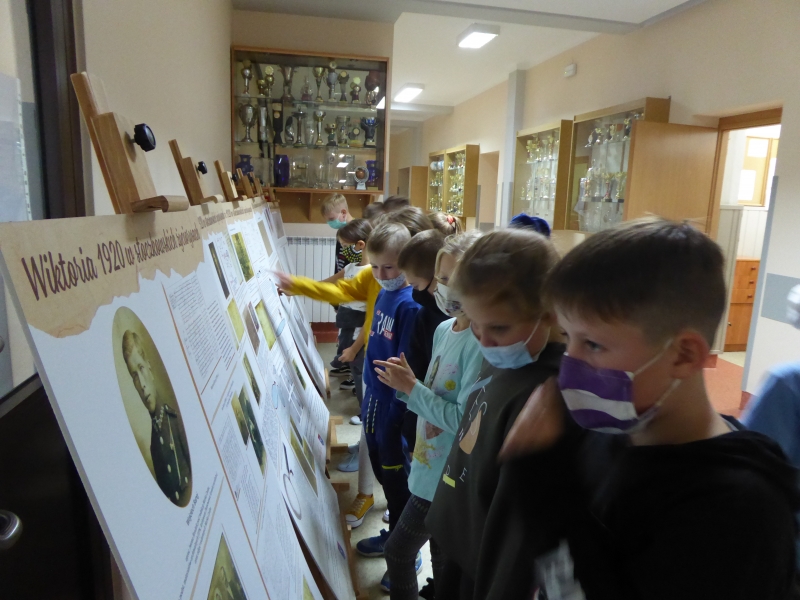 Uczniowie klas 0 – III zwiedzali wystawę wraz ze swoimi wychowawcami, natomiast uczniów klas IV – VIII po wystawie oprowadzała nauczycielka historii p. Danuta Żebrowska. Dzięki wystawie uczniowie poznali sylwetki miejscowych bohaterów walk o niepodległość, którzy byli członkami POW, żołnierzami Legionów Polskich i brali udział w wojnie polsko – bolszewickiej.