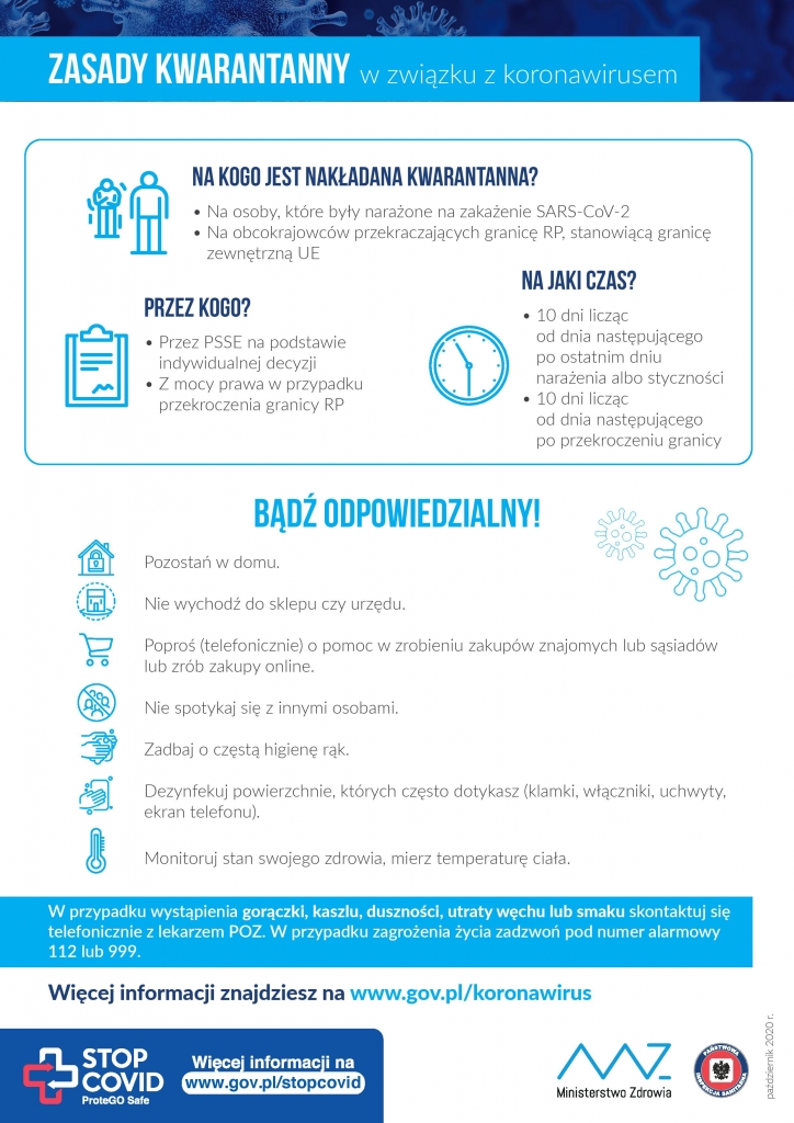 ZASADY KWARANTANNY W ZWIĄZKU Z KORONAWIRUSEM