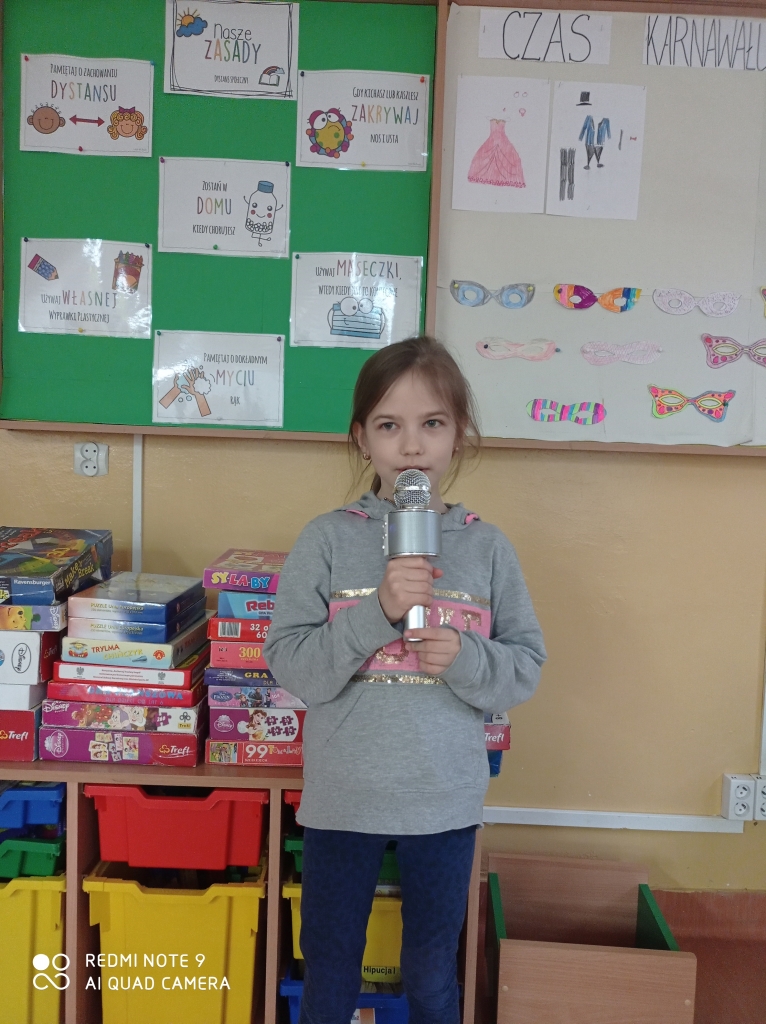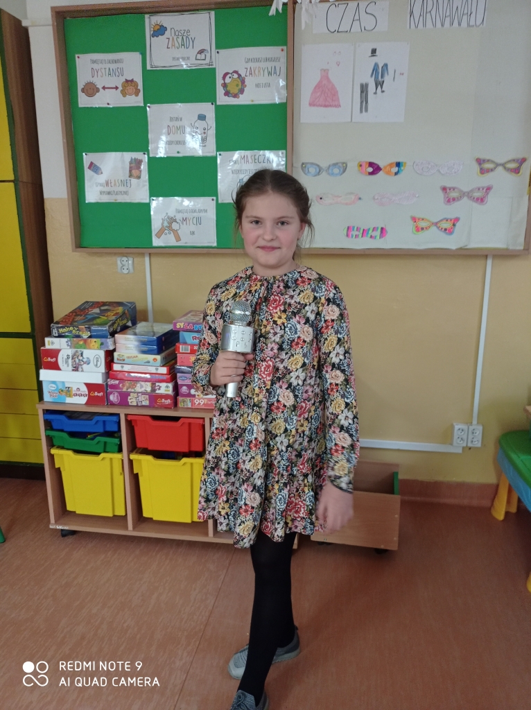 Dnia 3 lutego 2021 roku wszyscy chętni uczniowie uczęszczający do świetlicy wzięli udział, w świetlicowym balu karnawałowym. Tego dnia nie zabrakło wspólnych tańców, zabaw oraz konkursów. Uczniowie klasy I "a" wystąpili w pięknych strojach i przebraniach, bawiąc się w rytm muzyki. W radosnym nastroju pożegnaliśmy karnawał.