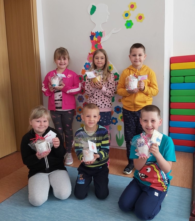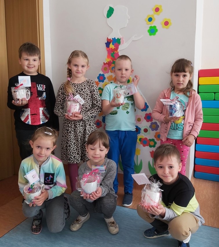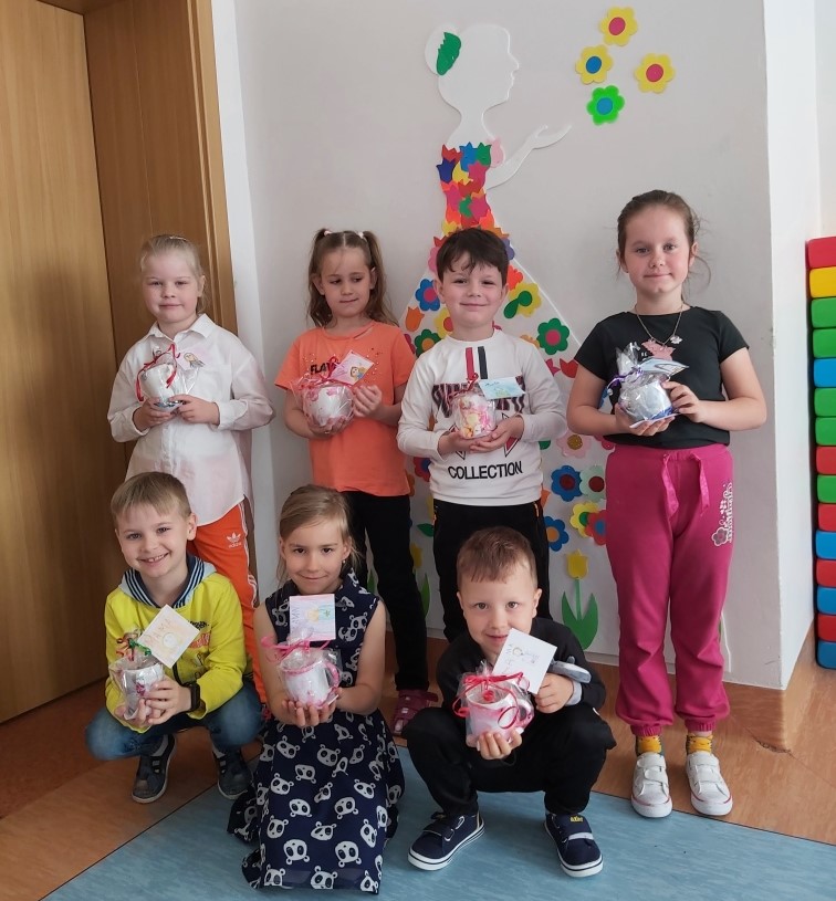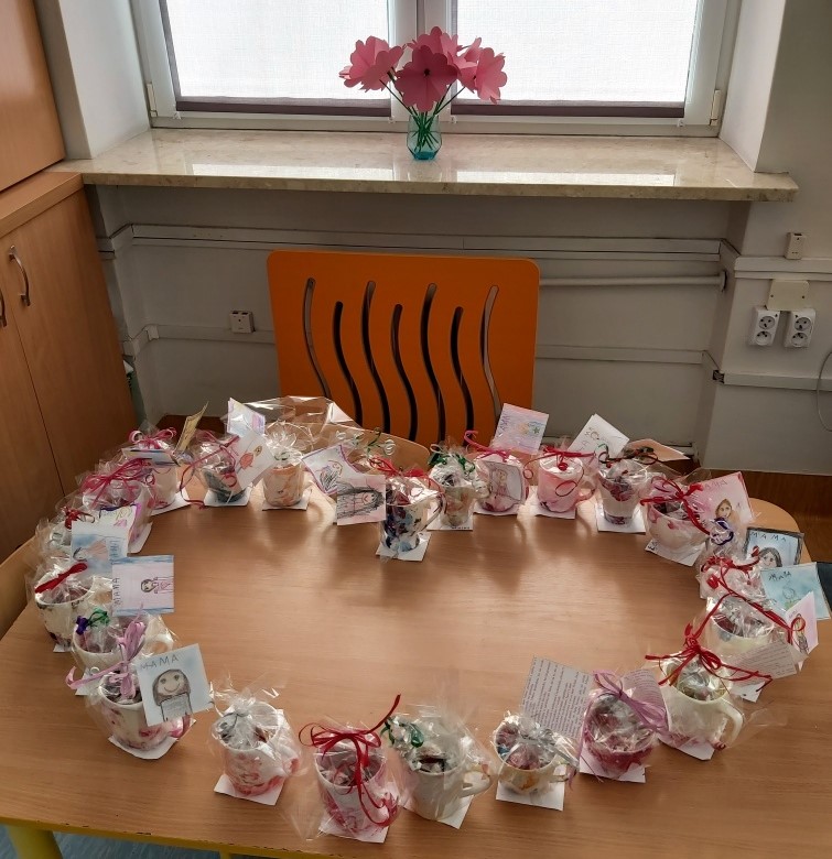 W obecnej sytuacji pandemii, wspólne świętowanie nie jest możliwe. Jednak dzieci nie zapomniały o swoich najukochańszych Mamusiach. Przez cały tydzień uczyły się piosenki oraz wiersza na ten dzień. Własnoręcznie wykonały też upominki, które napełniły słodkościami.
