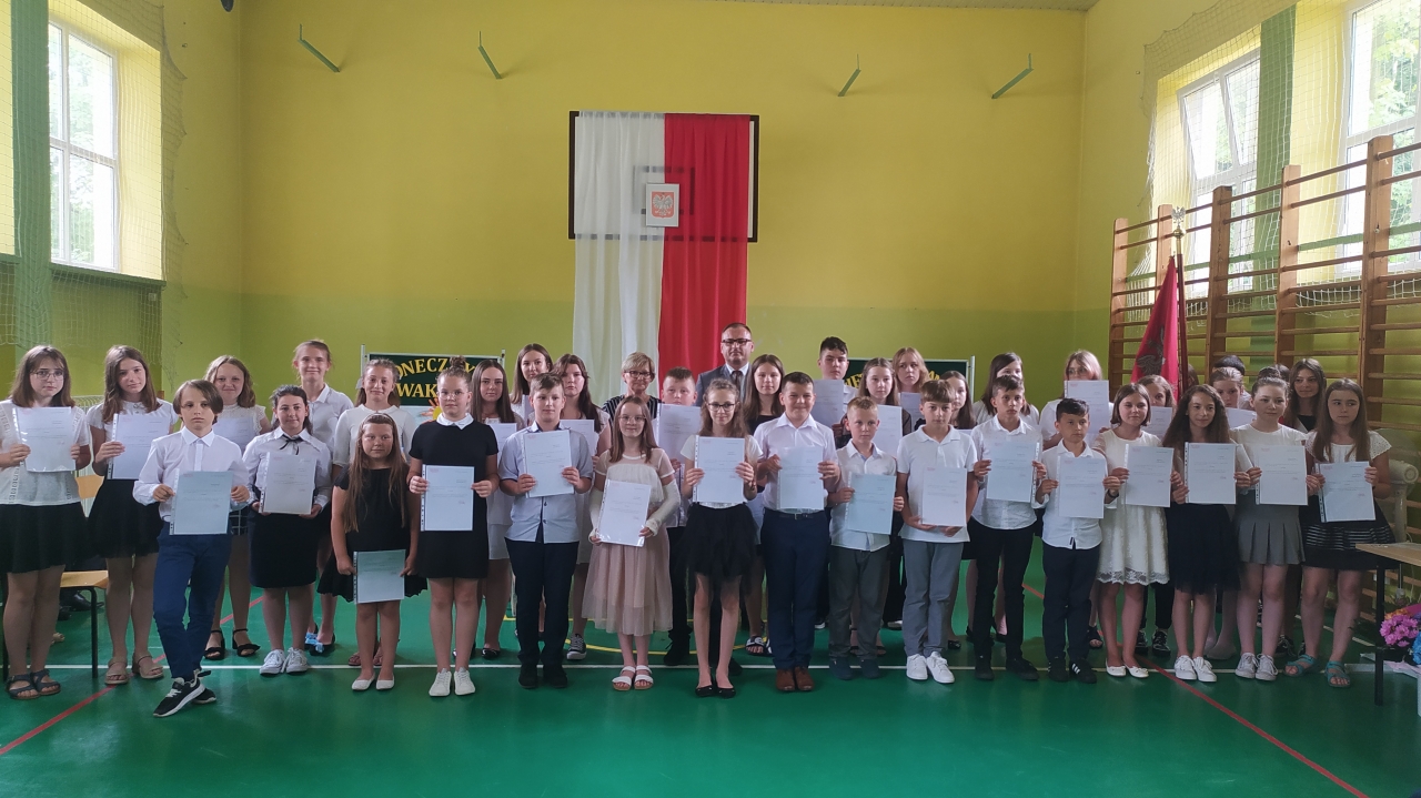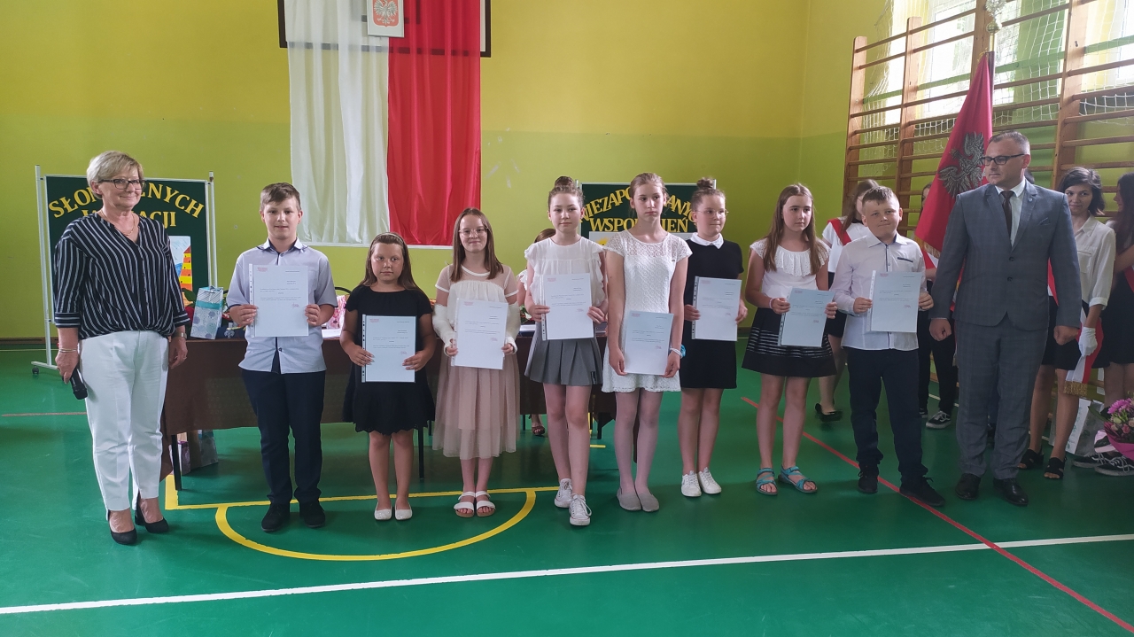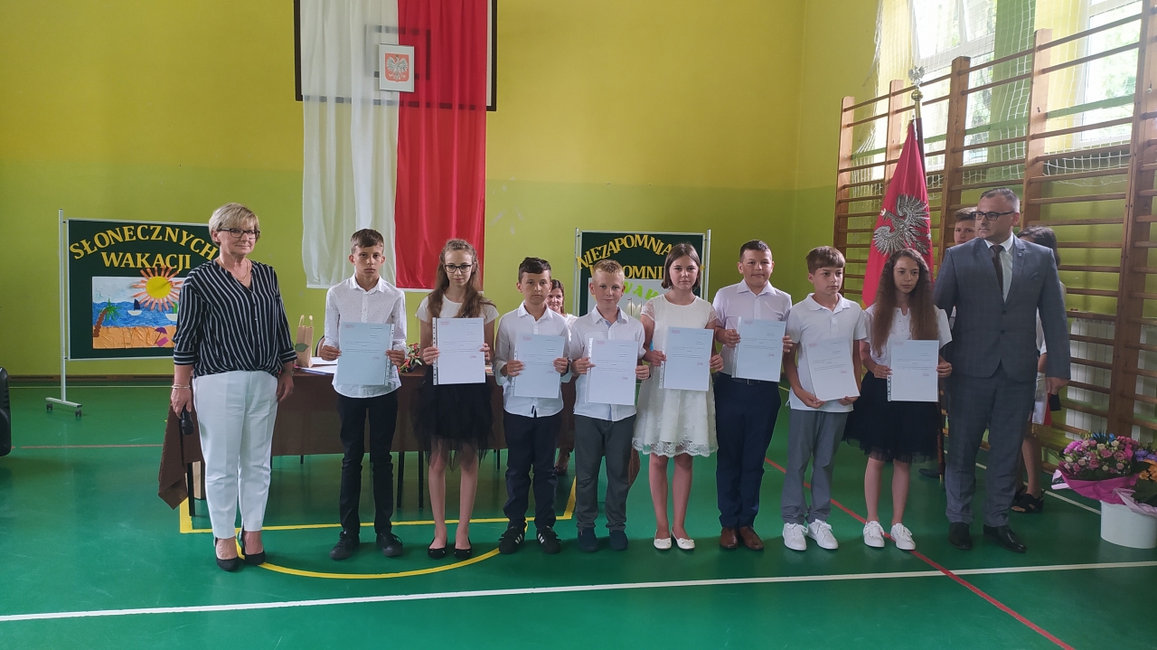 Klasa IV a: Drosio Bartłomiej, Kobojek Lena, Piotrowski Aleksander, Piskorz Mateusz, Rosa Natalia, Rosa Kacper, Sitkiewicz Szymon oraz Soćko Lena.