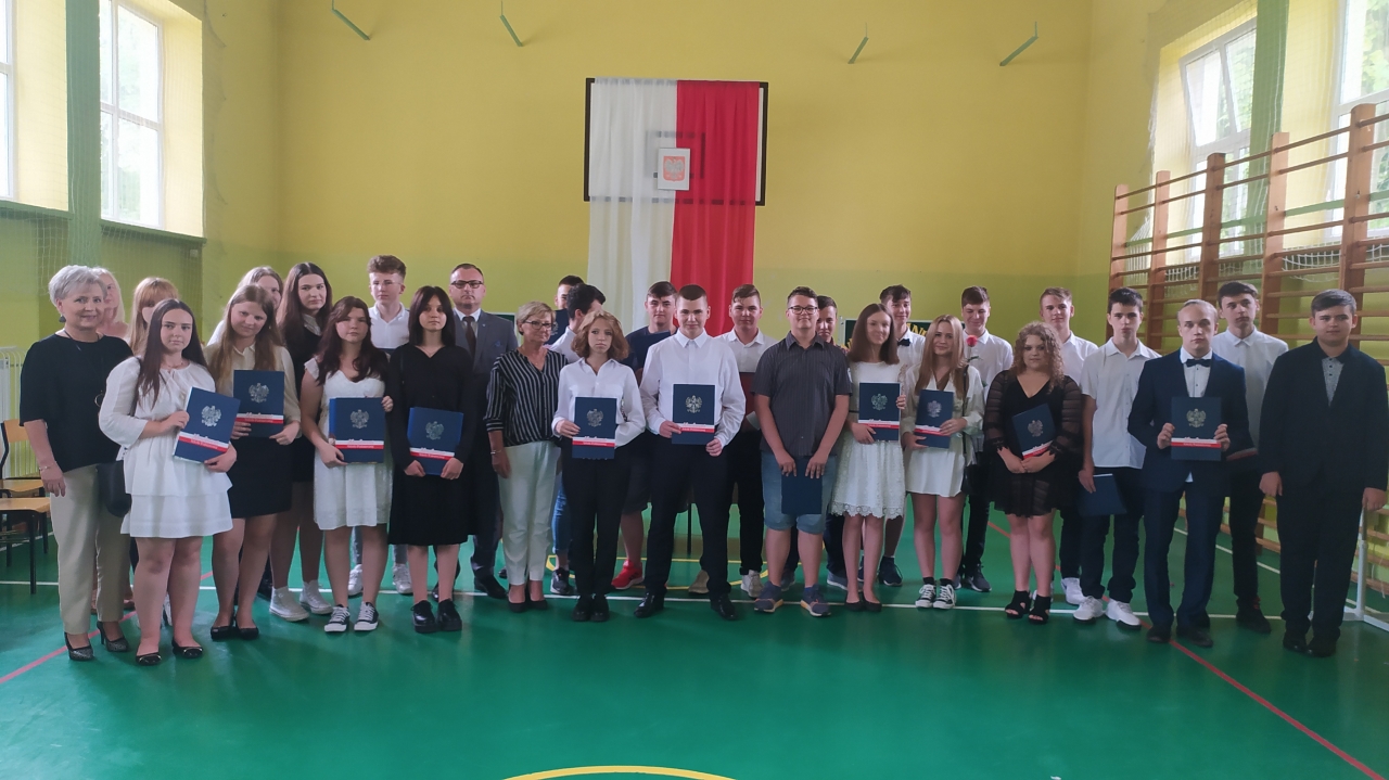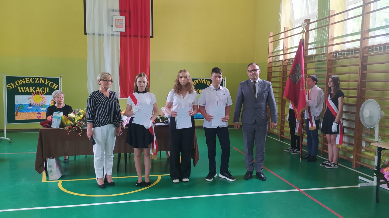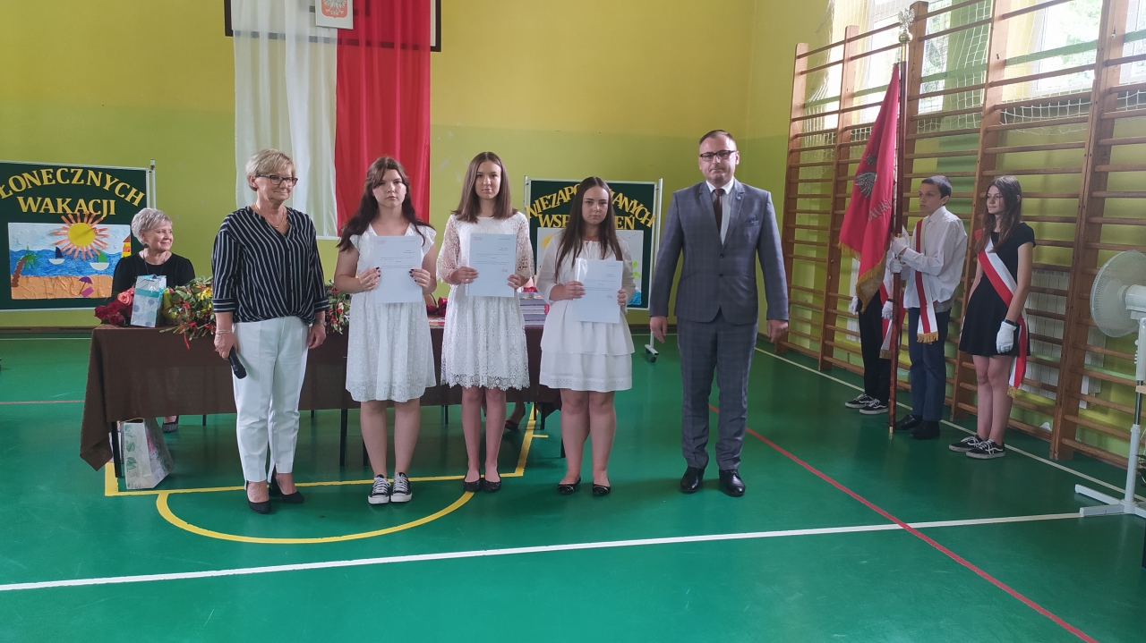 Podczas uroczystości wychowawczyni klasy VIII a - p. Agata Janisiewicz wręczyła uczniom świadectwa ukończenia Szkoły Podstawowej i życzyła swoim wychowankom dalszych sukcesów edukacyjnych w szkołach ponadpodstawowych.