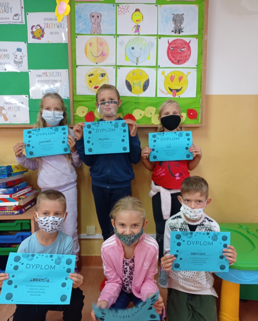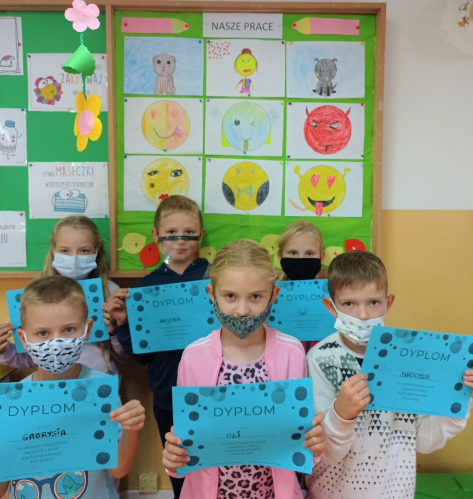Przeprowadzono na zajęciach świetlicowych pogadankę dotycząca empatii oraz wiary we własne siły. W tym dniu uczniowie również mogli wykazać się swoją kreatywnością, tworzyli piękne kropkowe prace plastyczne, które zostały wyeksponowane na świetlicowym parawanie. Inicjatywa ta wywołała wiele uśmiechu i radości wśród dzieci. Za rok na pewno znów będziemy obchodzić „Dzień Kropki”.