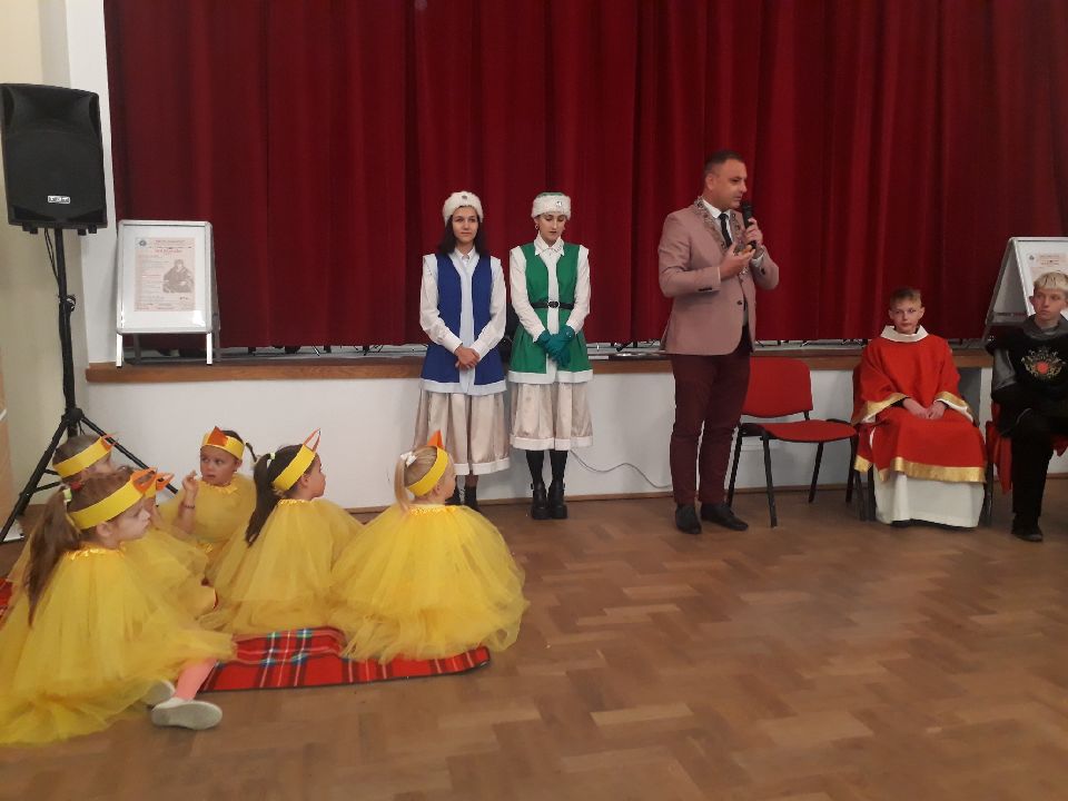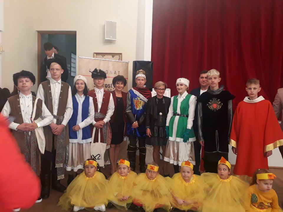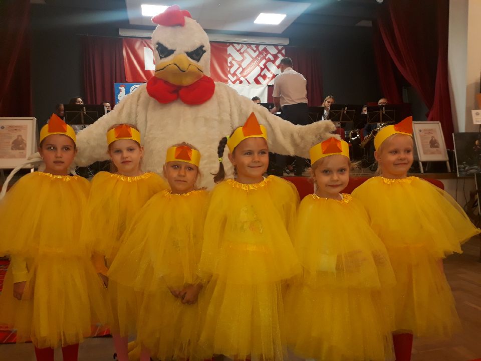Obchody jubileuszowe uatrakcyjnili wychowankowie przedszkola, którzy w przebraniu kurcząt towarzyszyli kogutowi – symbolowi herbowemu Miasta Stoczka Łukowskiego.