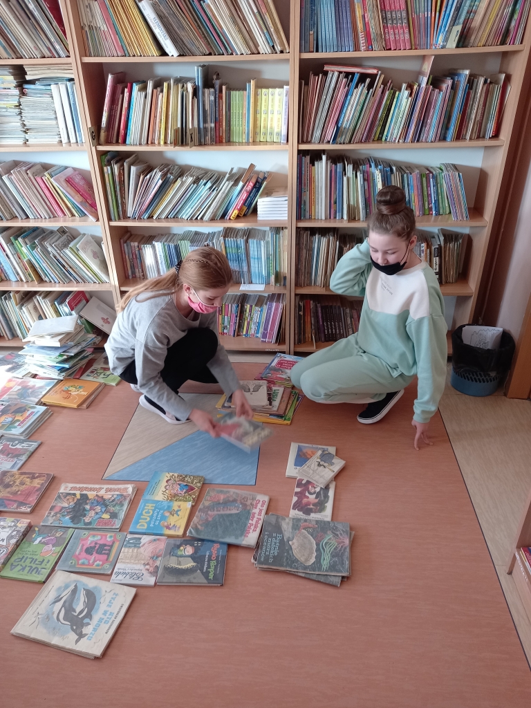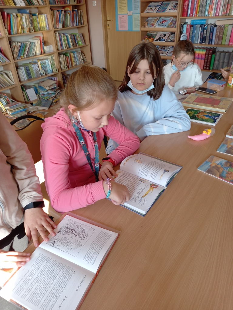 W bibliotece naszej szkoły uczniowie mieli okazję obejrzeć wystawę książek z baśniami i legendami dostępnych w księgozbiorze. Uczennice z klasy IV zapraszały na przerwach młodszych kolegów i koleżanki i czytały im wybrane legendy. Uczennice z klas V, należące do aktywu bibliotecznego głośno czytały książki uczniom klas I-III.