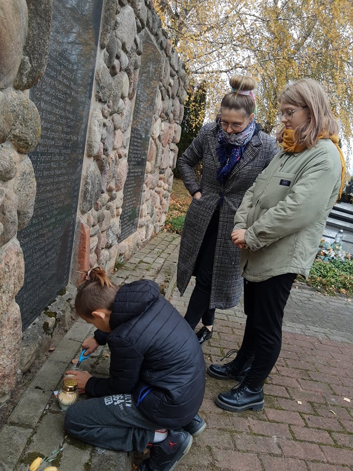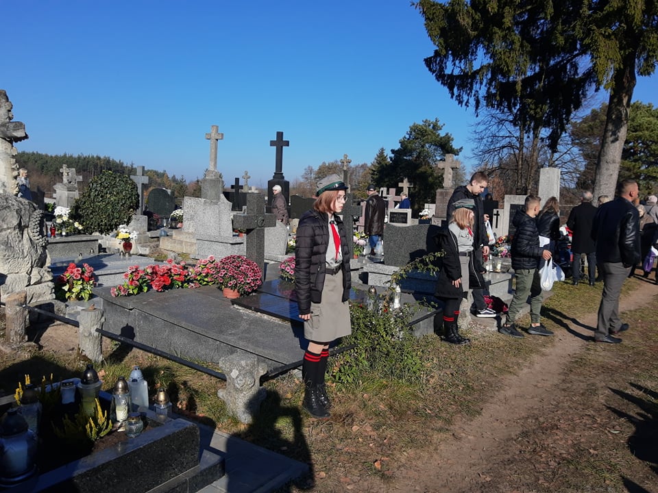 Nasza szkoła również włączyła się do tej pięknej i patriotycznej akcji. Przed Świętem Zmarłych Samorząd Uczniowski i harcerze odwiedzili lokalny cmentarz, gdzie spoczywają ludzie zasłużeni dla Stoczka Łukowskiego. Porządkowali mogiły powstańców styczniowych, żołnierzy walczących w okresie II wojny światowej a także groby opuszczone i zaniedbane. Zapalili znicze. W dniu 1 listopada harcerze pełnili warty honorowe przy grobach osób zasłużonych dla Ojczyzny. Uczniowie klas I odwiedzili miejsca pamięci narodowej w naszej małej Ojczyźnie oraz poznali ich krótką historię.