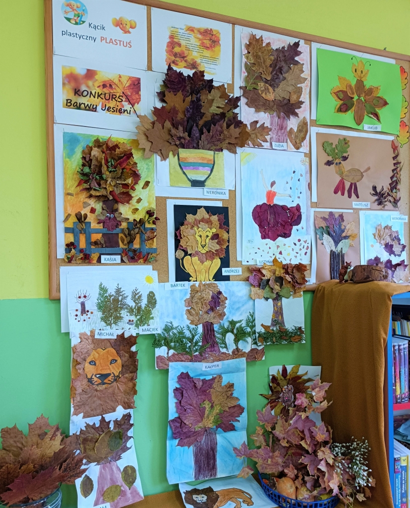 - Konkurs plastyczny „Barwy jesieni”- kompozycje z suszonych liści (ed. plastyczna)