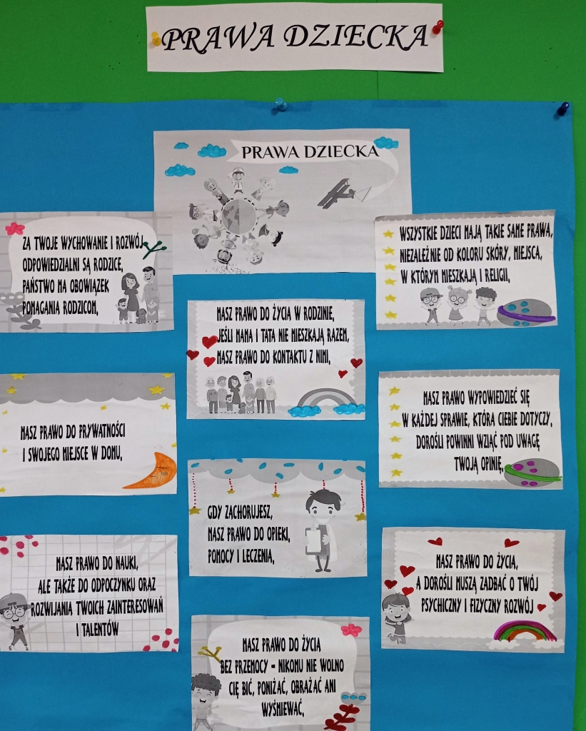 W szkolnej świetlicy również pamiętaliśmy o Prawach Dziecka. 20 listopada przypada Międzynarodowy Dzień Praw Dziecka. Nasi najmłodsi uczniowie aktywnie uczestniczyli na zajęciach: zostali zapoznani ze swoimi prawami, wspólnie wykonali plakat pt.: "Prawa Dziecka", słuchali piosenki pt.: "Piosenka o prawach dziecka" oraz obejrzeli bajkę edukacyjną "Prawa dziecka".