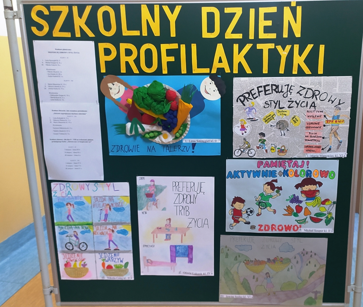 - Klasowy: dla klas 0 – VIII na wykonanie plakatu promującego hasło: „Zdrowo żyć, to bezpiecznie żyć” .