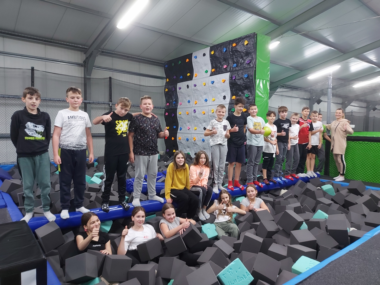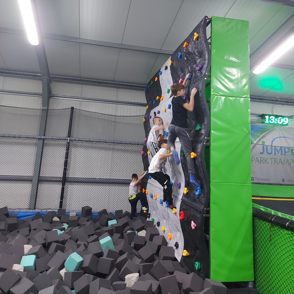 Pierwszym punktem wycieczki było kino, gdzie uczniowie oglądali film familijny pt. "Pogromcy duchów". Kolejną atrakcją był Park Trampolin Jump Out. Młodzi sportowcy spędzili dwie godziny na zabawach skocznościowych, wspinaczce i pokonywaniu zwinnościowych torów przeszkód. Pełni wrażeń i nowych umiejętności czekają na kolejne sportowe przygody.
