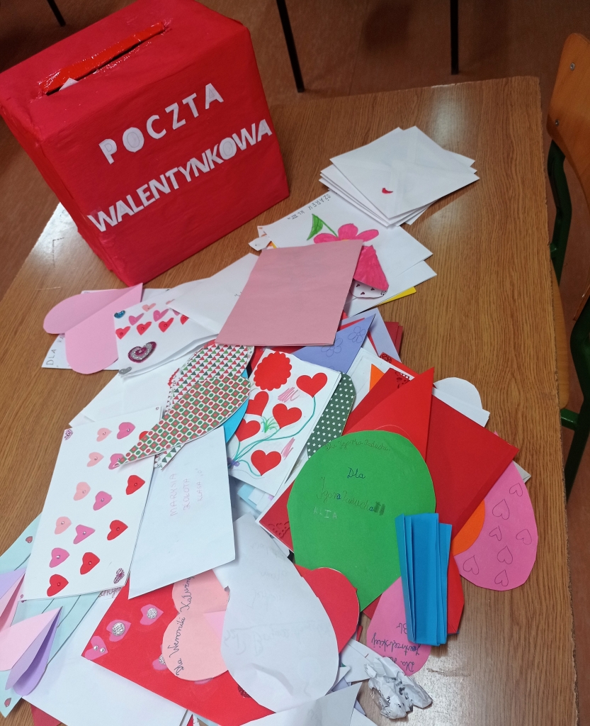 Stałym elementem święta zakochanych jest wzajemnie wręczanie sobie walentynkowych, ozdobnych karteczek (najczęściej jest to czerwone serce opatrzone wierszykiem). Z tej okazji właśnie w szkole zorganizowano pocztę walentynkową. Każdy z uczniów szkoły przez cały tydzień mógł wrzucić do skrzynki swoją walentynkę. Poczta cieszyła się ogromnym zainteresowaniem.