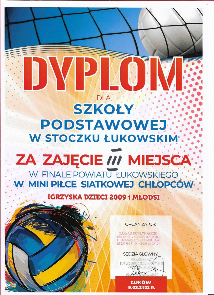 Dnia 9 marca 2022 r. uczniowie oddziału sportowego brali udział w Finale Powiatu Łukowskiego w mini piłce siatkowej 4-ki chłopców.