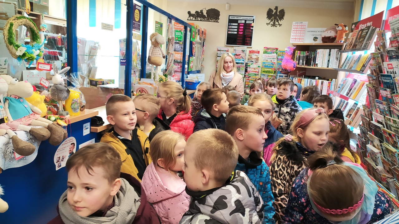 W kwietniu uczniowie klas pierwszych wybrali się na pocztę. Celem wycieczki było zapoznanie z wyposażeniem urzędu pocztowego i pracą listonosza.