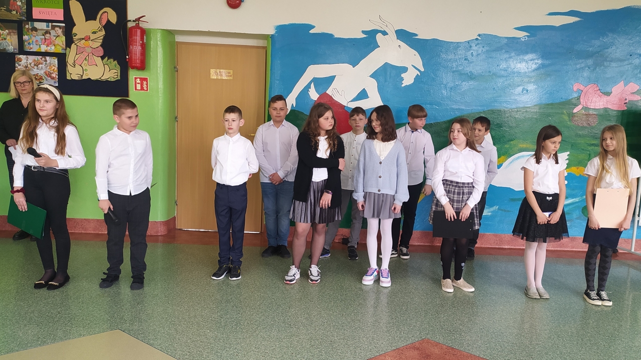 W dniu 25 kwietnia 2022 r. uczniowie klasy IV "b" zaprezentowali społeczności szkolnej przygotowany przez nich występ pt. "Jesteśmy odpowiedzialni za nasze środowisko naturalne" w ramach działań szkolnych z cyklu „Wychowania do wartości”.