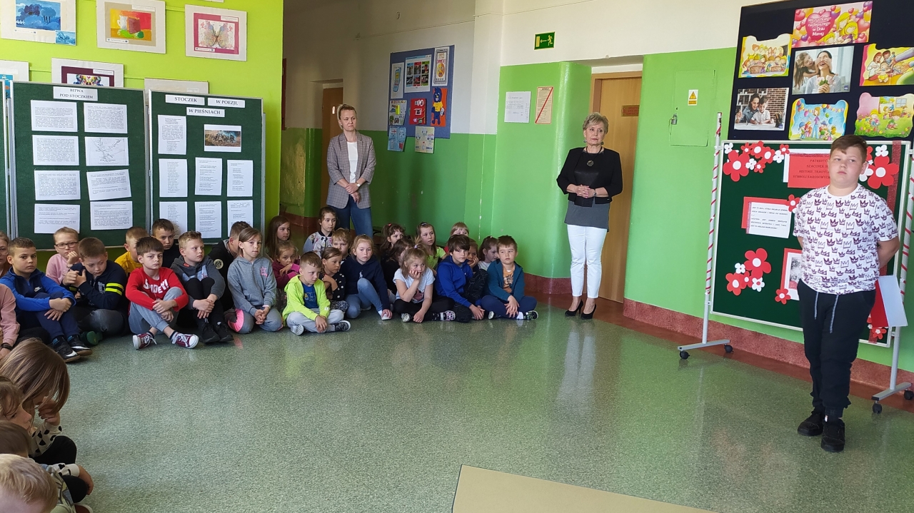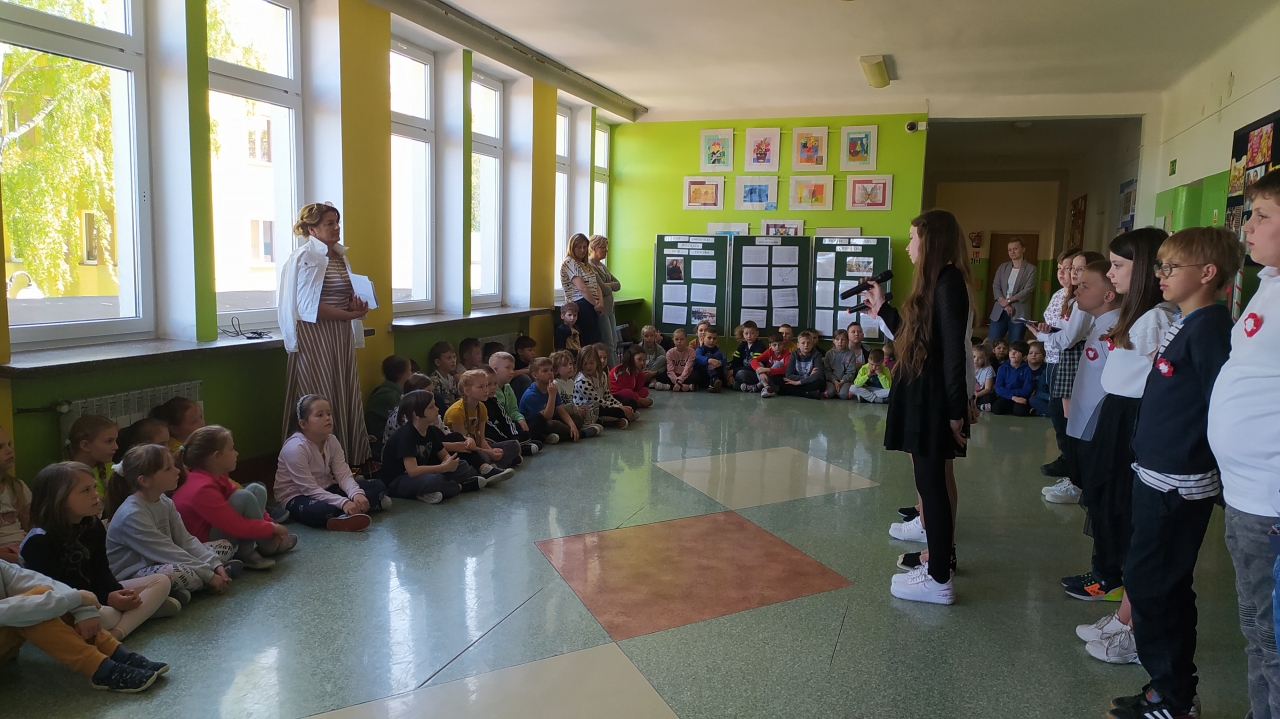 16 maja 2022 r. uczniowie klasy V b zaprezentowali społeczności szkolnej przygotowany przez nich występ pt. "Patriotyzm - szanujemy nasze dziedzictwo" w ramach szkolnych działań, comiesięcznych apeli z cyklu "Wychowania do wartości".