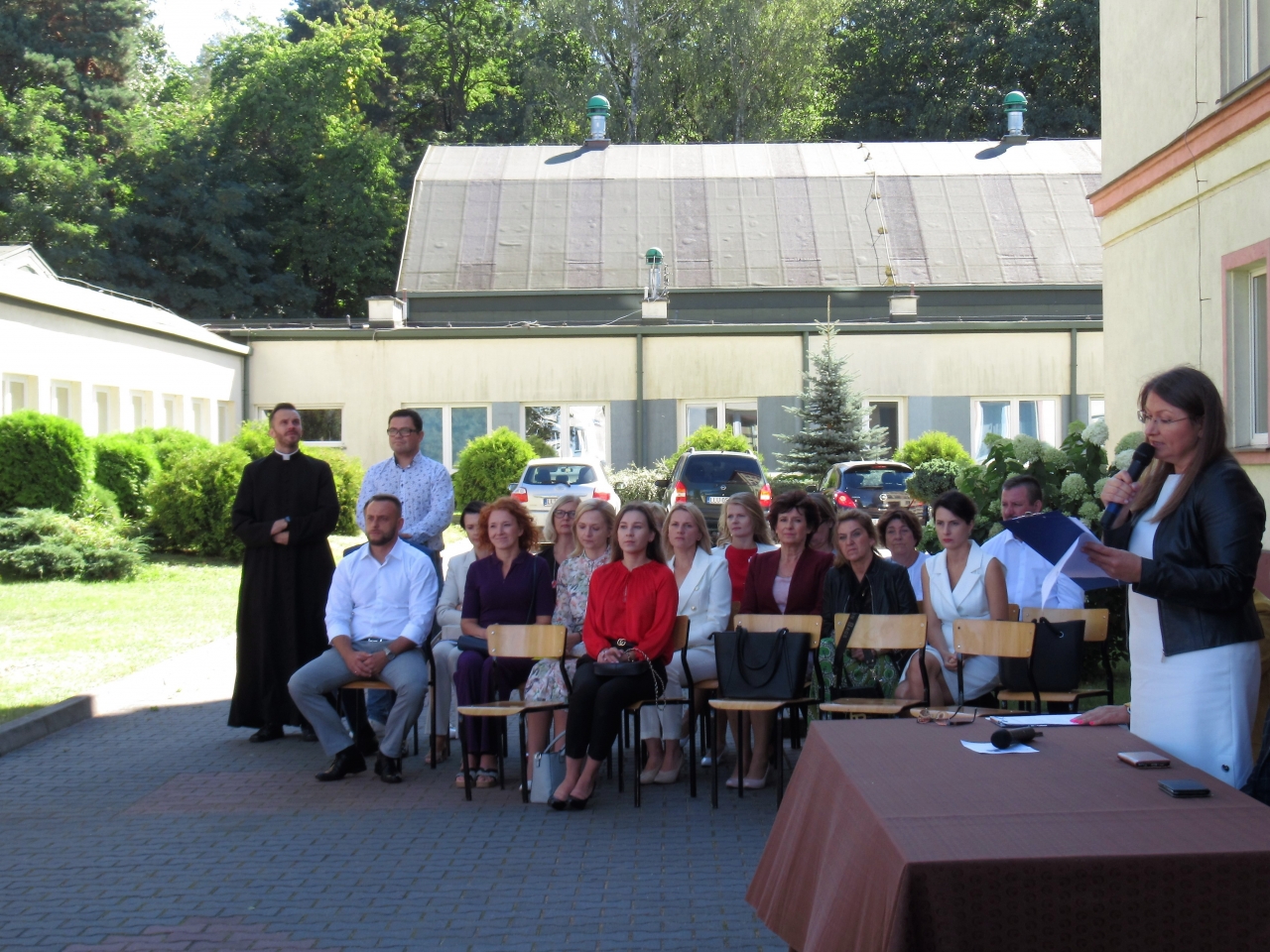 Pani Dyrektor życzyła uczniom sukcesów edukacyjnych w nowym roku szkolnym i wyraziła nadzieję na owocną wpółpracę z licznie przybyłymi rodzicami. Po oficjalnej części uroczystości uczniowie wraz z wychowawcami udali się do sal lekcyjnych na "pierszą lekcję wychowawczą".