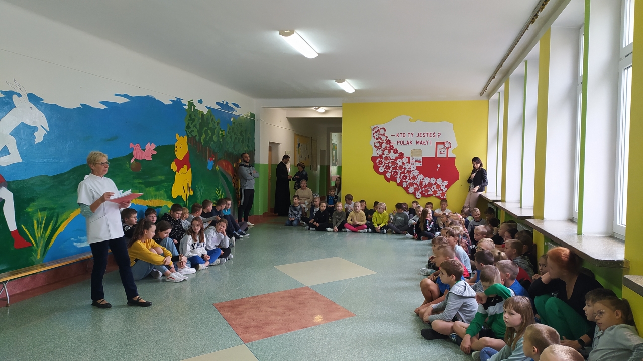 Kolejny zasób wiedzy na temat profilaktyki chorób zakaźnych przekazała pielęgniarka szkolna podczas prelekcji dla uczniów klas 0-III i IV-VIII.