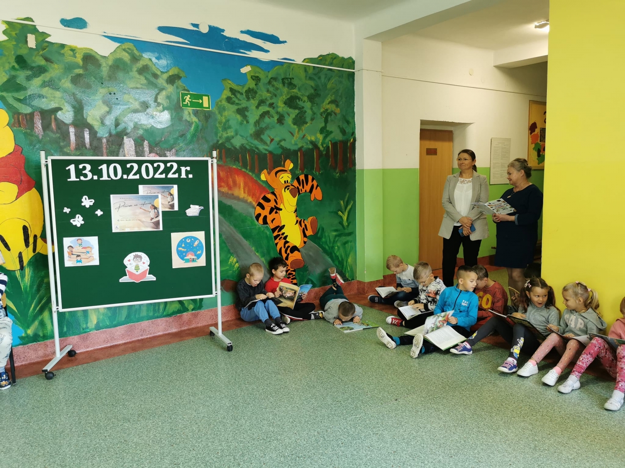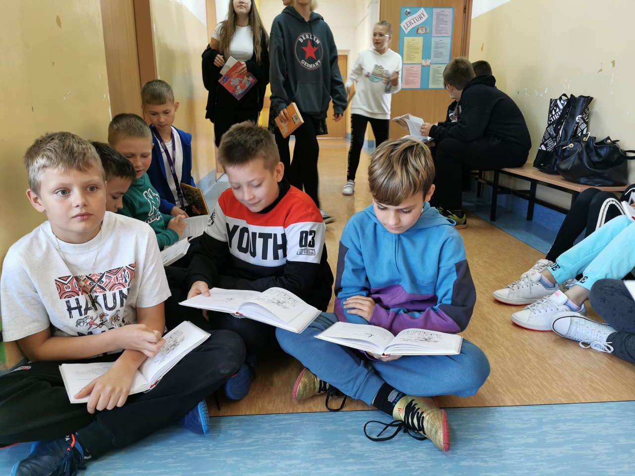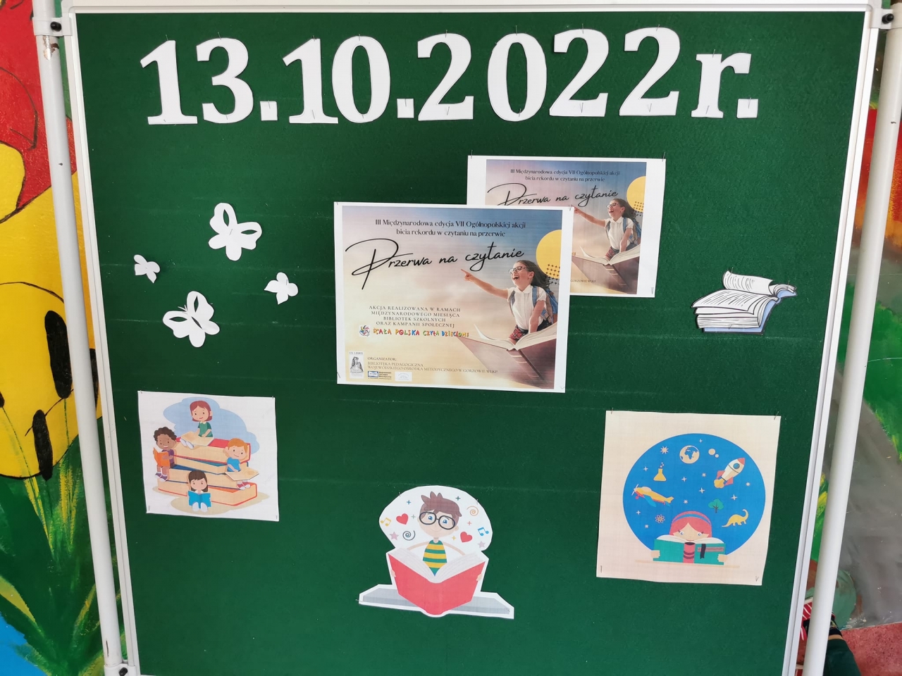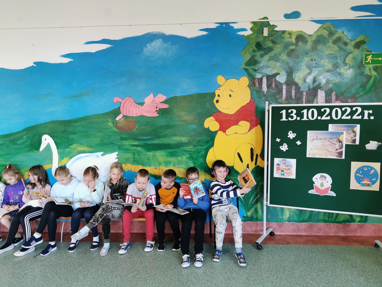 Dnia 13 października 2022 r. nasza szkoła wzięła udział w Ogólnopolskiej Akcji Przerwa na Czytanie. Celem wydarzenia było pobicie rekordu w czytaniu wybranych pozycji książkowych na przerwie oraz promowanie czytelnictwa wśród dzieci.