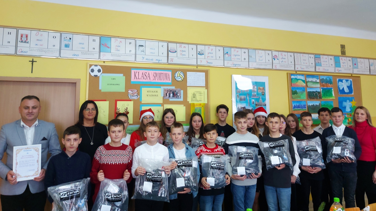 Dnia 22 grudnia uczniowie klasy VI a oddziału sportowego przy okazji wigilii klasowej otrzymali prezenty w postaci zestawów strojów turniejowych.