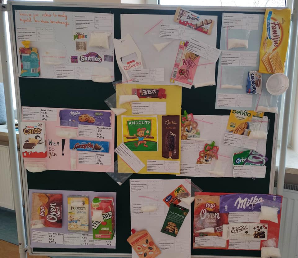 W ramach ogólnopolskiego projektu "(Nie)zwykła matematyka" uczniowie klasy VI b sprawdzili jaka jest zawartość cukru w ich ulubionych przekąskach i napojach, nauczyli się czytać etykiety i zwracać uwagę na wartości odżywcze produktów.