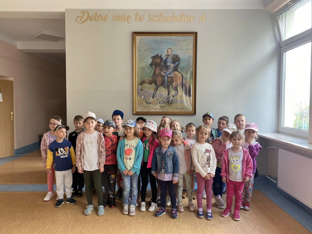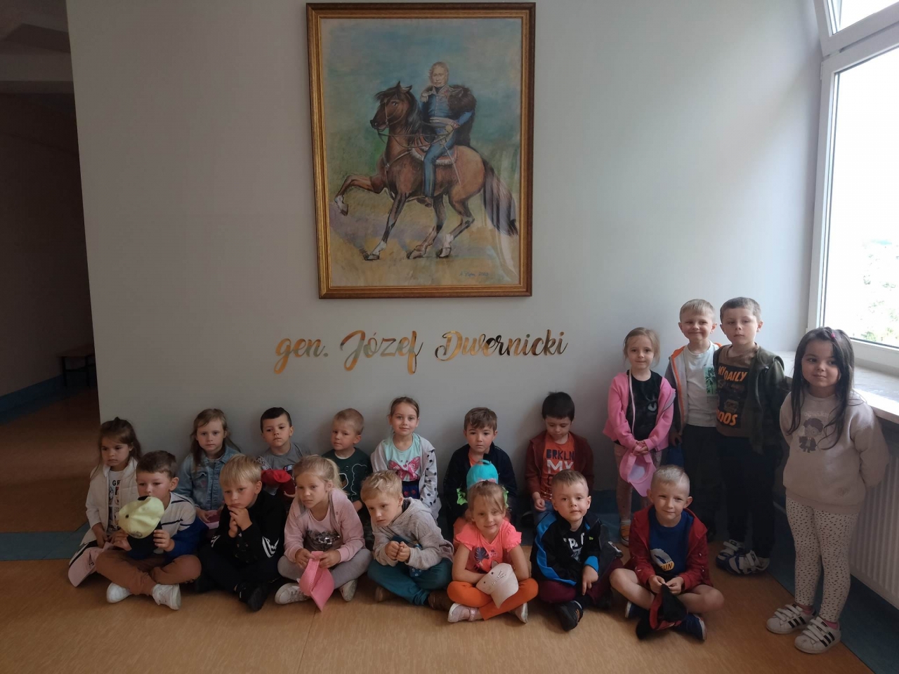 Z dużym zainteresowaniem dzieci zwiedziły kolejne pomieszczenia szkolne: stołówkę, gabinet Pani Dyrektor, salę oddziału przedszkolnego, salę gimnastyczną oraz sekretariat. Dzieci odwiedziły również Izbę Pamięci, w której od Pani Danuty Żebrowskiej usłyszały wiele ciekawostek na temat naszego miasta. Przedszkolaki pełne wrażeń wróciły do przedszkola.