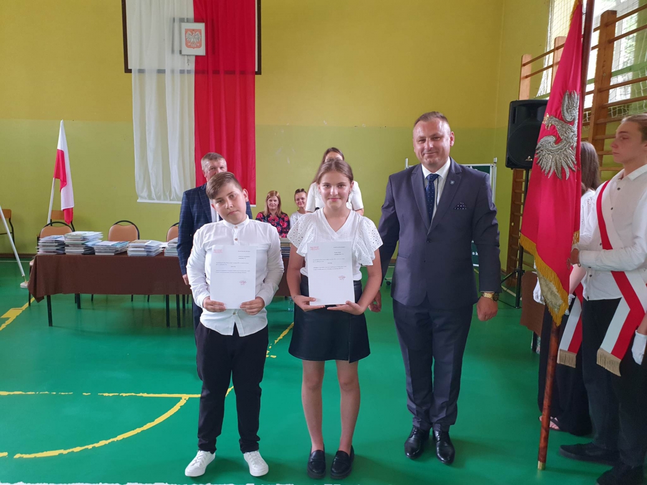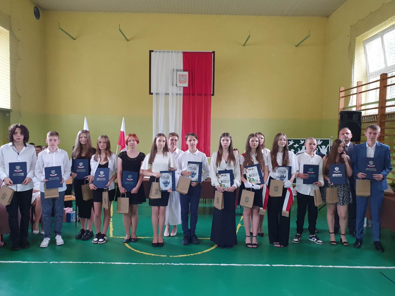 Podczas uroczystości pożegnaliśmy nie tylko ósmoklasistów, ale również wieloletnich pracowników szkoły: Panią Bożenę Szczepańczyk oraz Pana Ryszarda Olkowicza, którym życzymy wszelkiej pomyślności na emeryturze, dni pełnych radości i uśmiechu.
