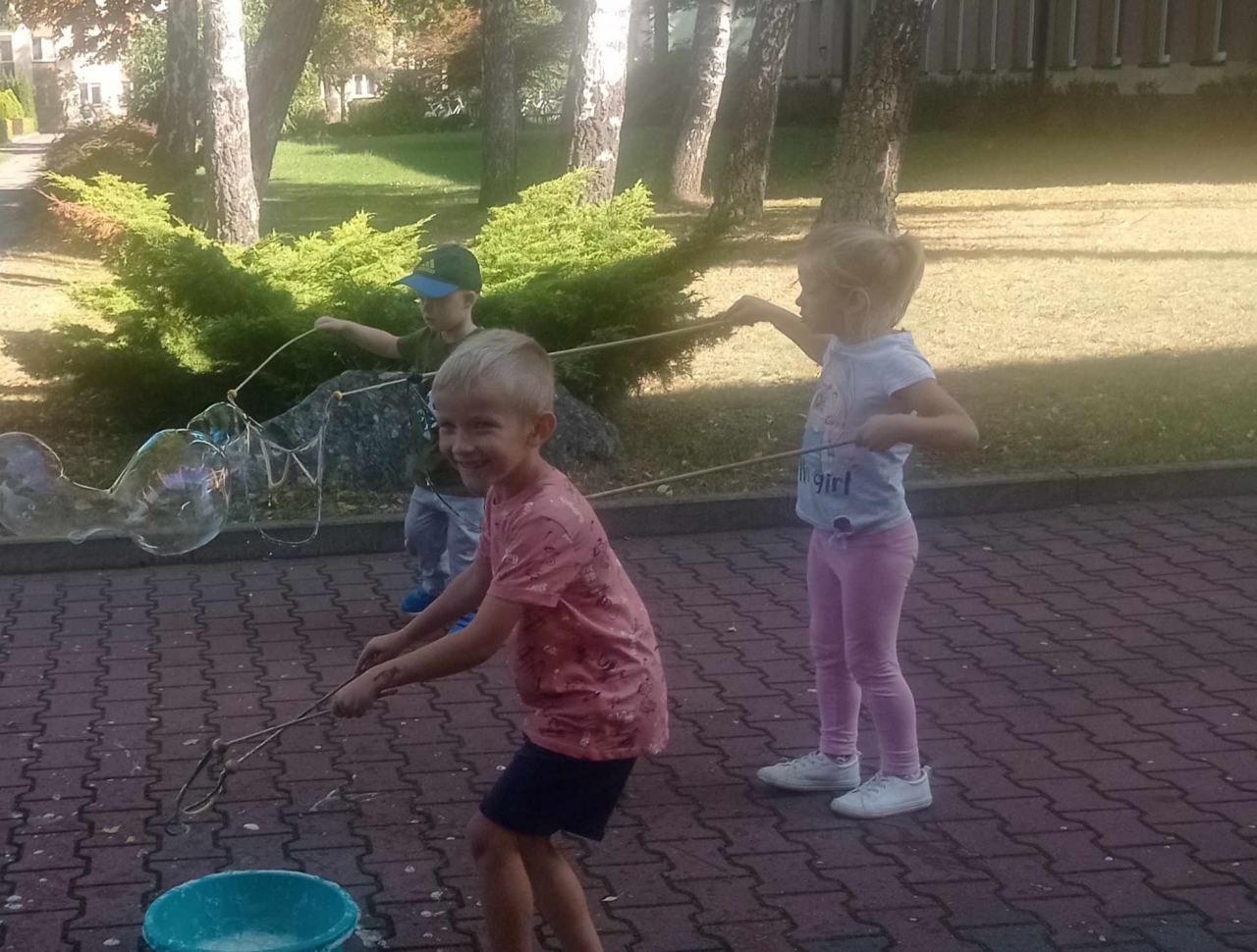 Wielką radość sprawiła dzieciom wizyta Myszki Minnie, która wspólnie bawiła się podczas zabaw tanecznych oraz puszczanie wieeeeelkich baniek mydlanych.