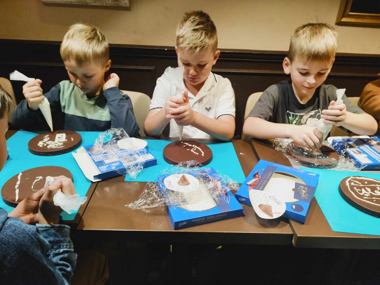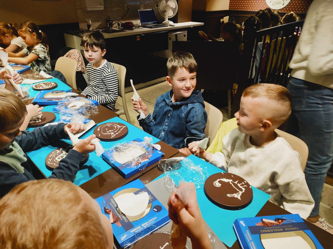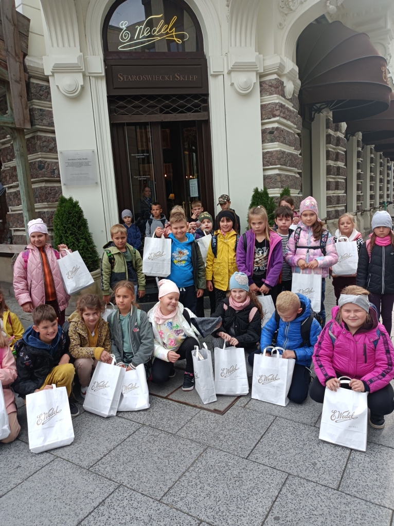 Podczas wycieczki uczniowie odwiedzili Pijalnię Czekolady E. Wedel. Z prezentacji dowiedzieli się, jak powstaje czekolada, mieli też okazję zobaczyć owoce kakaowca i w których częściach świata rosną. Następnie przyszedł czas na spróbowanie pysznej płynnej czekolady z bitą śmietaną. Pełni energii wzięli udział w warsztatach, podczas których własnoręcznie ozdabiali torciki białą czekoladą, które potem zabrali do domu.