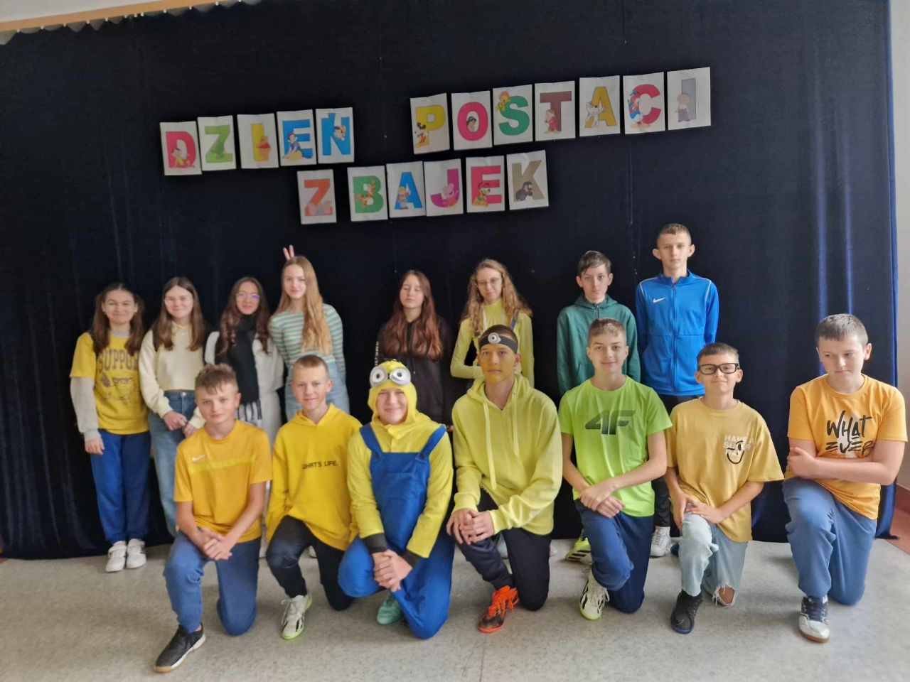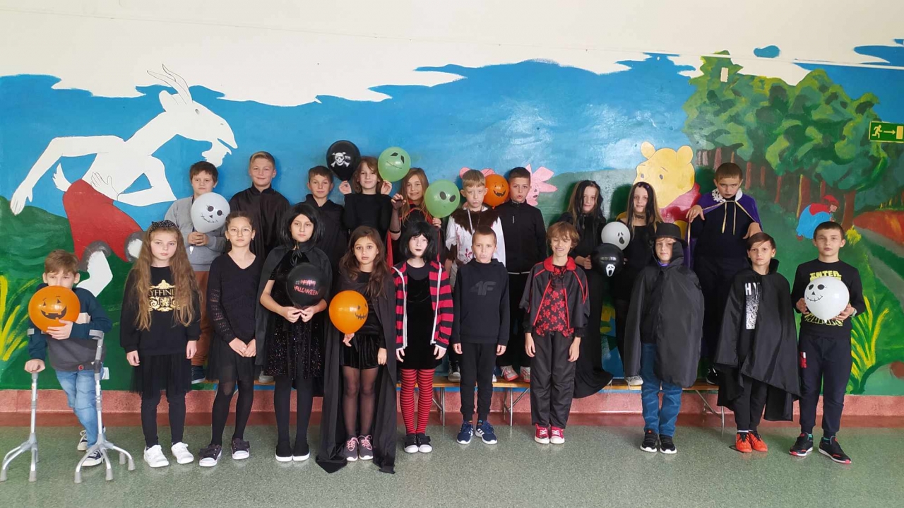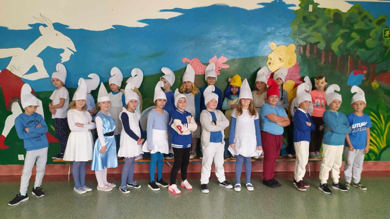Wszystkie klasy, łącznie z oddziałem przedszkolnym, po wcześniejszym wylosowaniu bajki, przebrały się za postacie ze znanych bajek. Na przygotowanej w stołówce szkolnej ściance uczniowie mieli możliwość wykonania zdjęć klasowych i grupowych.