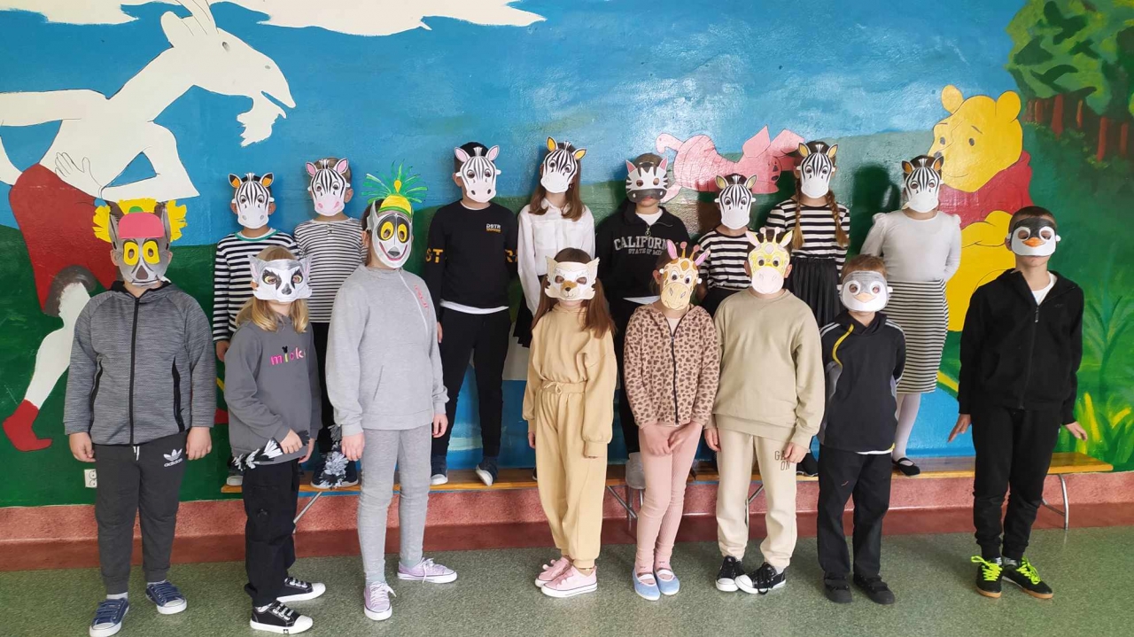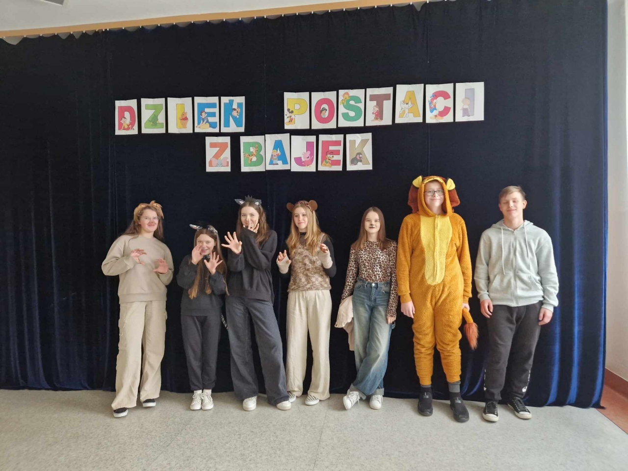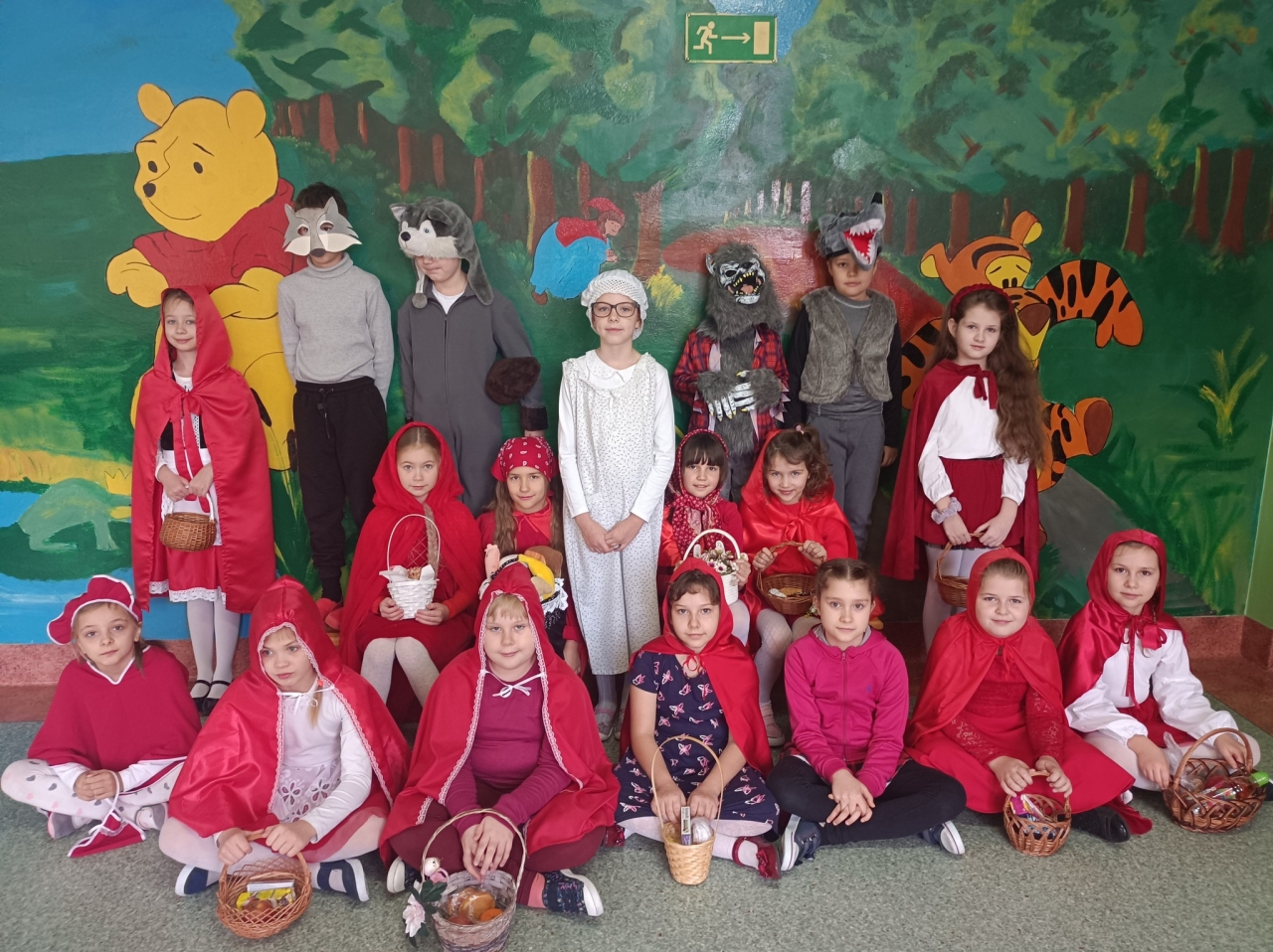 Wszystkie klasy, łącznie z oddziałem przedszkolnym, po wcześniejszym wylosowaniu bajki, przebrały się za postacie ze znanych bajek. Na przygotowanej w stołówce szkolnej ściance uczniowie mieli możliwość wykonania zdjęć klasowych i grupowych.