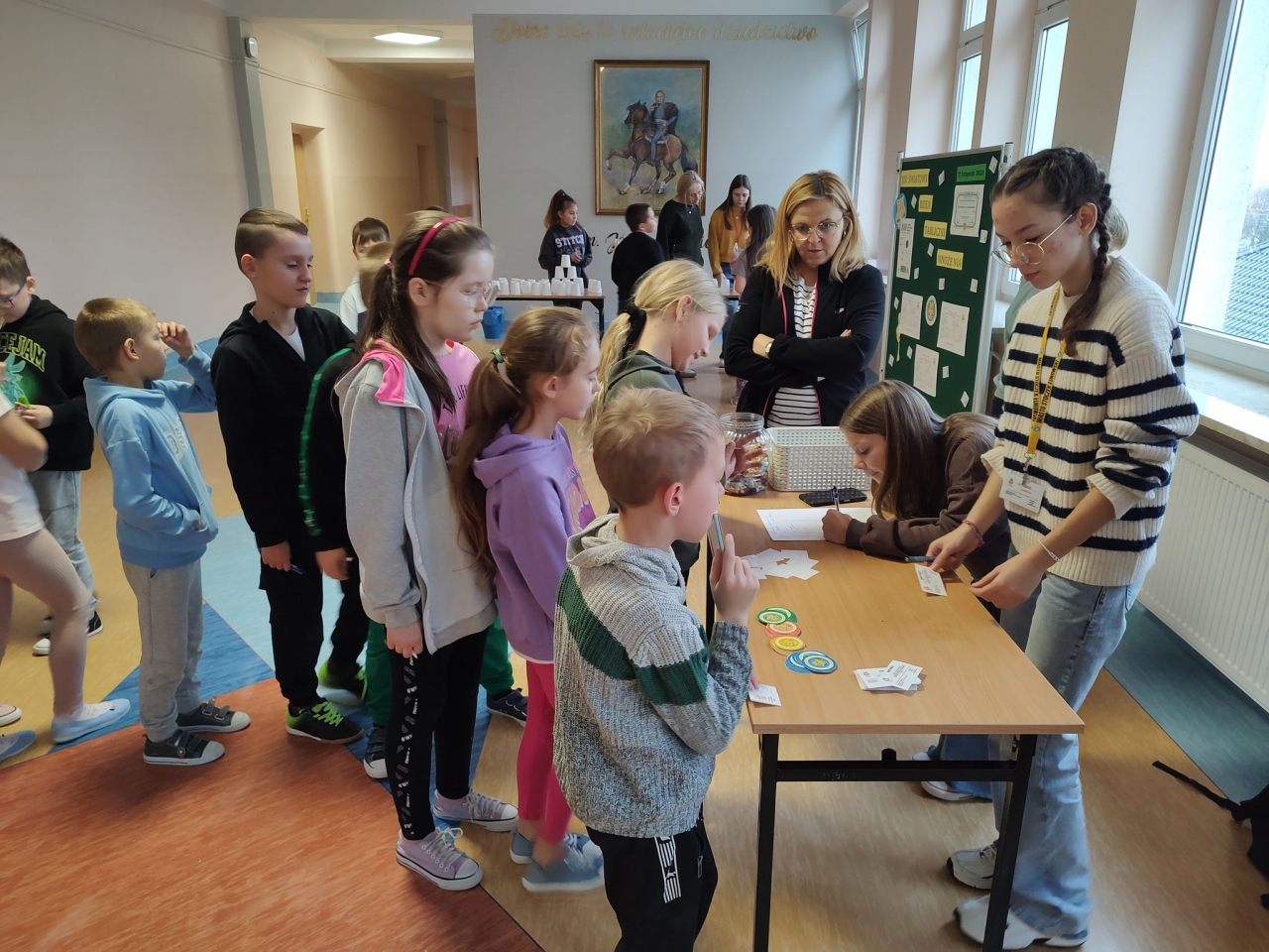 17 listopada obchodziliśmy XIII Światowy Dzień Tabliczki Mnożenia. Przez cały dzień towarzyszyła nam matematyczna zabawa. Uczniowie siódmych i szóstych klas wcielili się w rolę egzaminatorów i sprawdzili znajomość tabliczki mnożenia swoich kolegów, koleżanek i nie tylko... Po zakończonej akcji w szkole udaliśmy się do lokalnych instytucji, sklepów i przedsiębiorstw, aby sprawdzić czy tabliczka mnożenia przydaje się w "dorosłym" życiu.