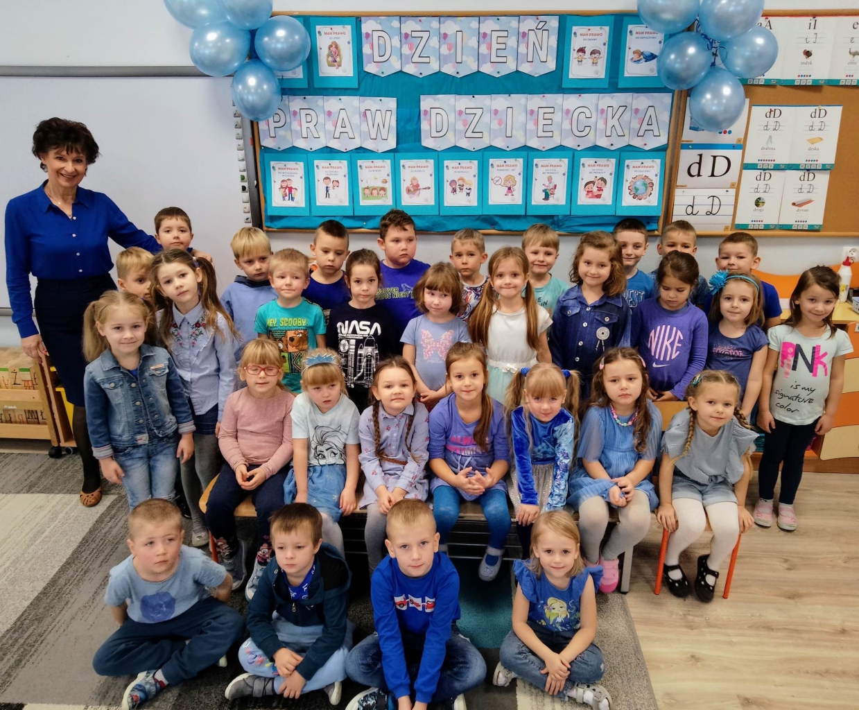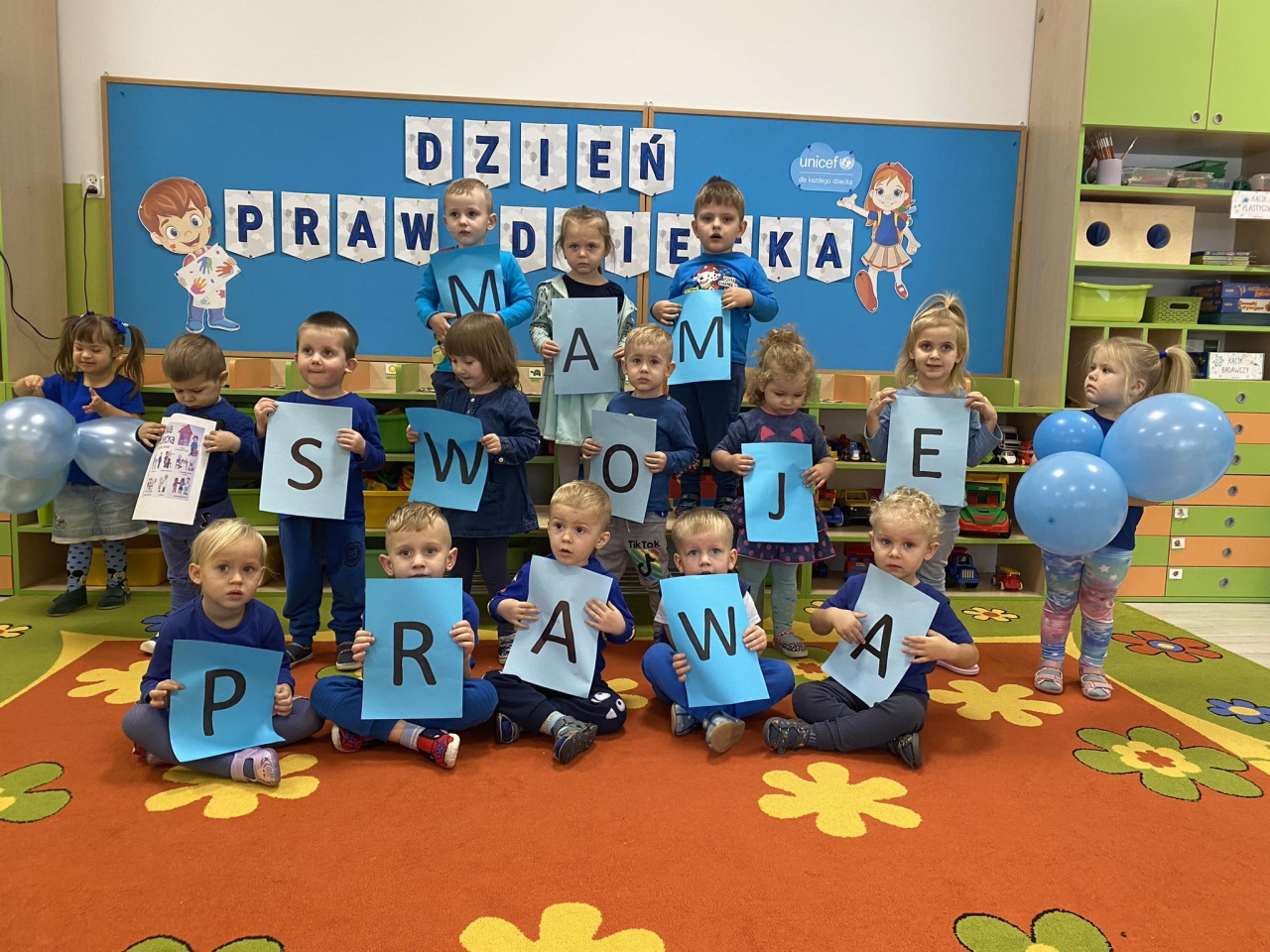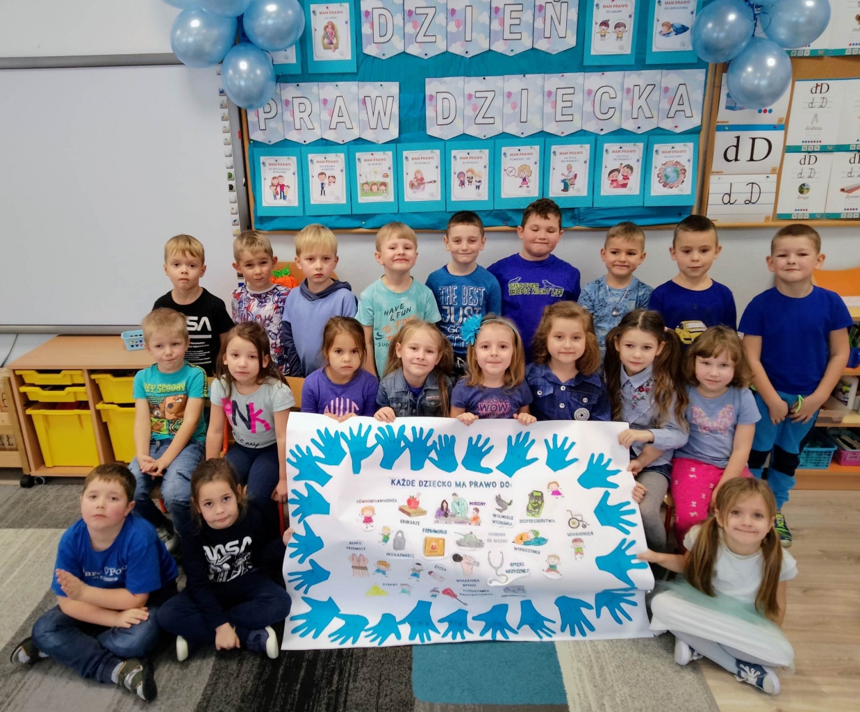 Nadrzędnymi prawami, które dzieci poznały to prawo do zabawy, miłości, szacunku oraz zdobywania wiedzy. Dzieci w tym dniu przyszły ubrane na niebiesko jako symbol solidarności ze wszystkimi dziećmi na świecie, również tymi, których prawa nie są przestrzegane. We wszystkich grupach przedszkolnych zostały przeprowadzone zajęcia o prawach dziecka z wykorzystaniem ciekawych materiałów edukacyjnych.