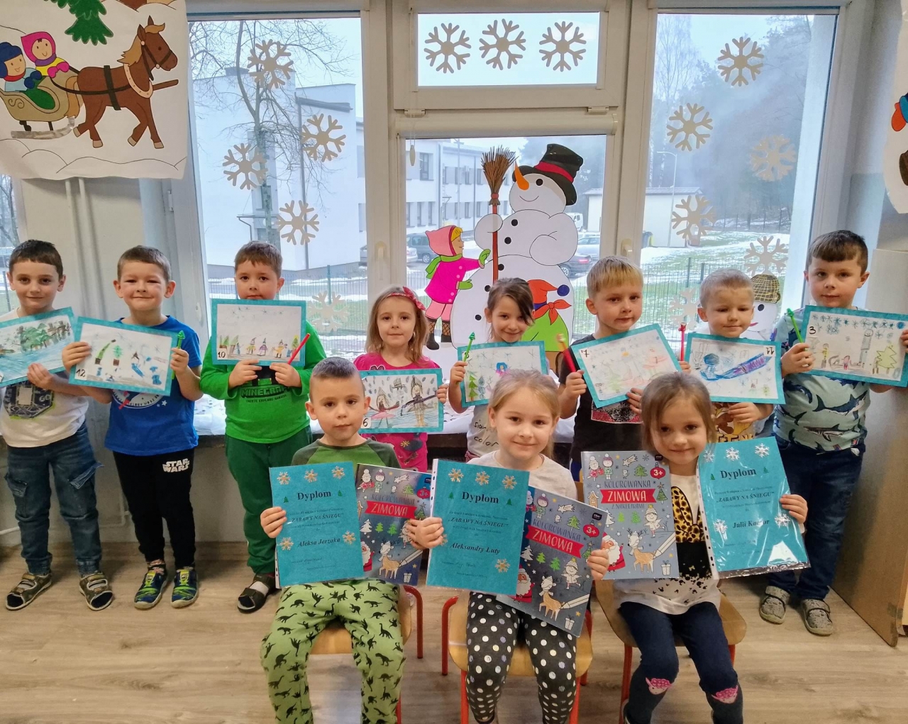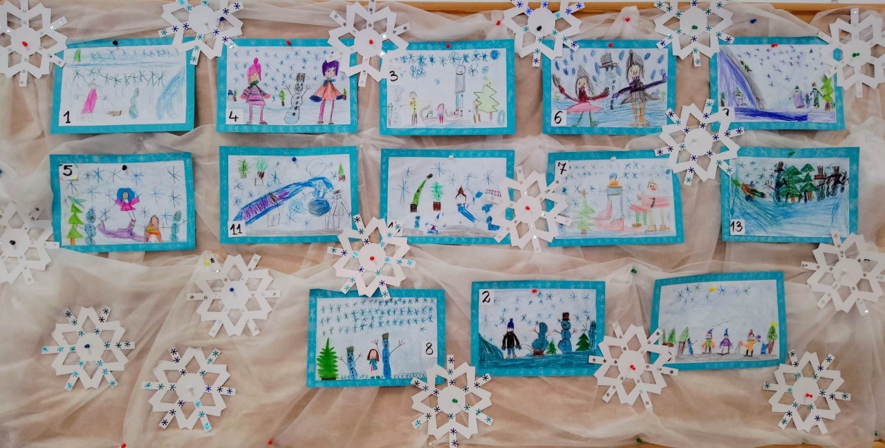 7 grudnia dzieci samodzielnie wykonały w przedszkolu prace plastyczne przedstawiające zabawy na śniegu. Uroczyste wręczenie nagród i dyplomów odbyło się 13 grudnia. Wszyscy uczestnicy konkursu zostali nagrodzeni, a spośród nich komisja konkursowa wyłoniła trzy zwycięskie prace: