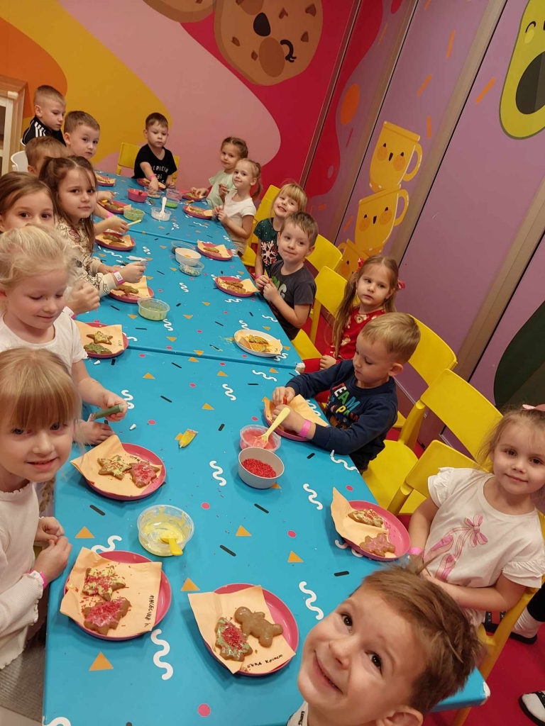 Dzieci bawiły się w dziewięciu strefach mądrej zabawy. Wielu zabawom towarzyszyła umiejętność współpracy grupowej i poszukiwanie najlepszych rozwiązań, by osiągnąć upragniony cel, np. dostarczyć przesyłkę, zrobić zakupy w Biedronce czy też stworzyć własne miasteczko. Przedszkolaki uczestniczyły również w warsztatach świątecznych - dekorowaniu pierniczków oraz w spotkaniu z Mikołajem.
