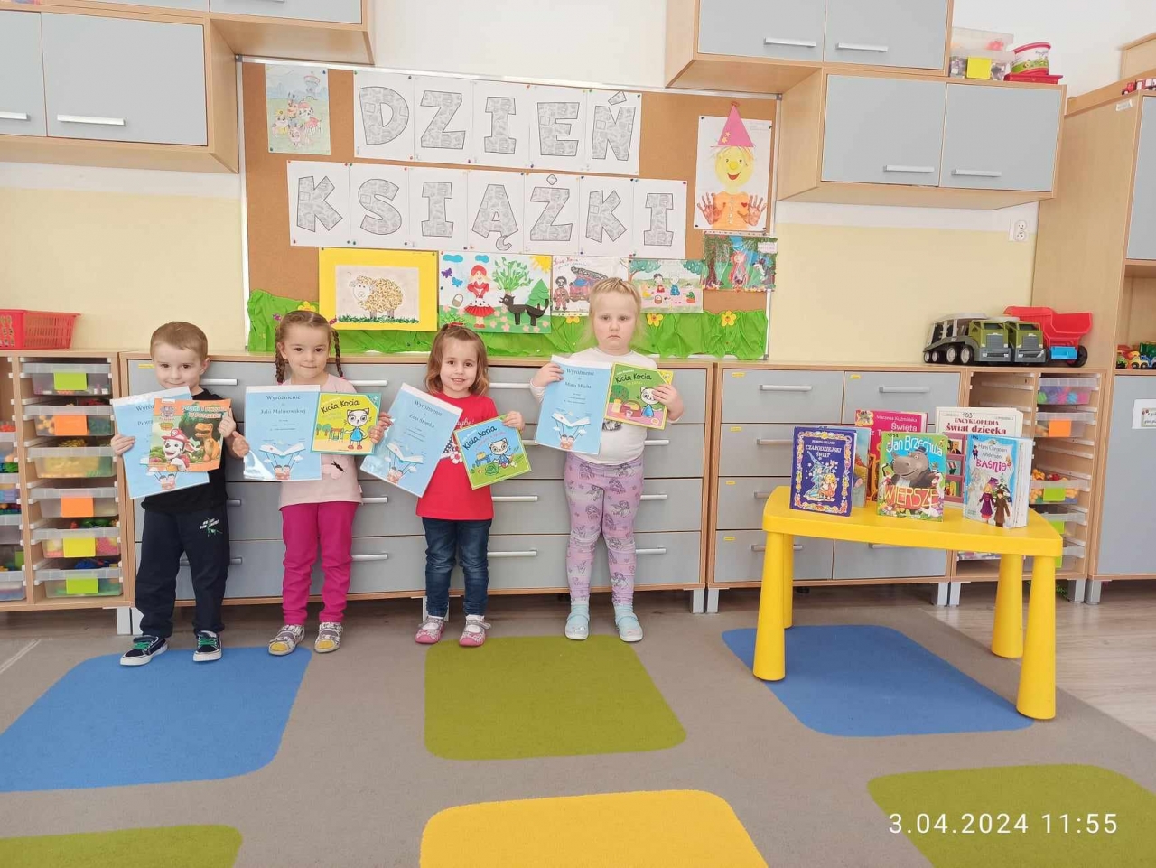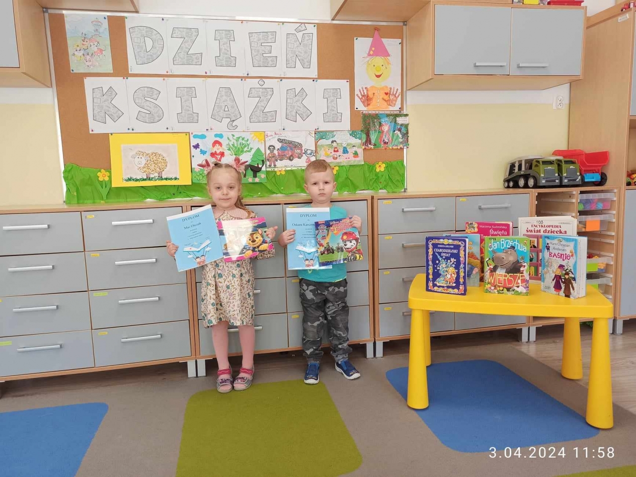 3 kwietnia w grupie 3-4 latków odbyło się podsumowanie konkursu plastycznego pt. „Moja ulubiona książka”. Konkurs został zorganizowany w ramach popularyzacji Międzynarodowego Dnia Książki dla Dzieci oraz innowacji pedagogicznej pt. „W bajkowym świecie”.