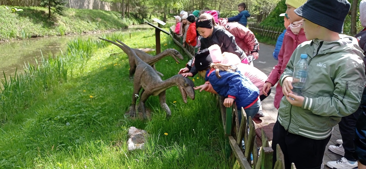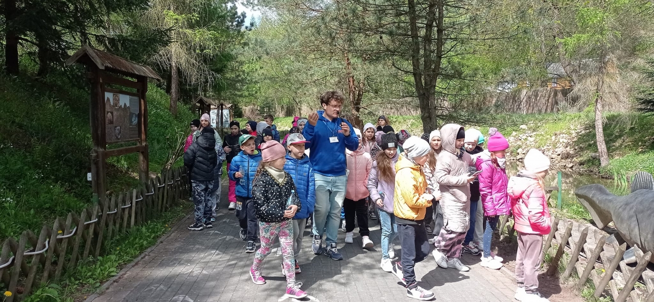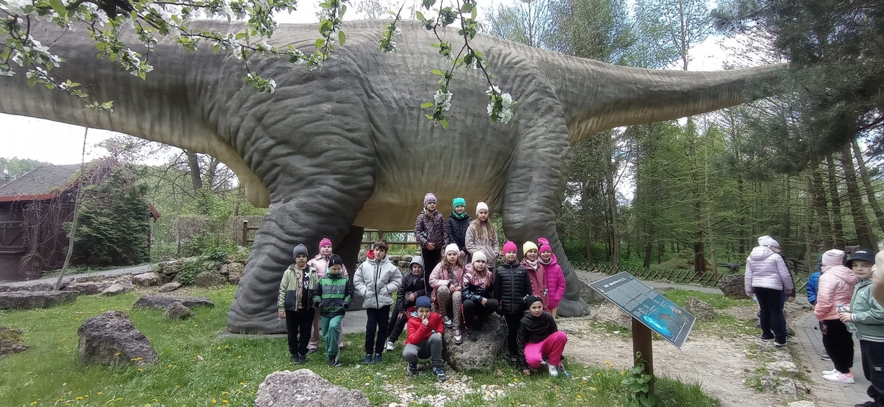 W dniach 18-19 kwietnia 2024 r. uczniowie klas I-IV uczestniczyli w dwudniowej wycieczce. Kierunek zwiedzania jaki był zaplanowany to: Bałtów, Ćmielów i Sandomierz. Niezwykłą przygodę rozpoczęliśmy od Jura Parku, gdzie wszystkich wycieczkowiczów powitał pan przewodnik, opowiadajac o zgromadzonych eksponatach. Wędrując ścieżkami przez park, widzieliśmy modele dinozaurów i innych prehistorycznych stworzeń, które miały naturalną wielkość. Następnie z dużym entuzjazmem zwiedziliśmy Bałtowski Zwierzyniec podróżując amerykańskim autobusem (schoolbusem) pomiędzy różnymi zwierzętami: lamami, wielbłądami, strusiami, dzikami, końmi, jeleniami, żubrami i innymi rozmieszczonymi na wielohektarowym terenie – tzw. Safari. Nieco wytchnienia dały nam warsztaty, podczas których zabawiliśmy się w paleontologów dokopując się do szkieletu dinozaura. Podczas spaceru po "Polsce w Miniaturze”, mogliśmy podziwiać kopie zabytków z całej Polski, odwzorowanych z maksymalną precyzją, takich jak: zamki, pałace i inne charakterystyczne budowle z czasów świetności naszego kraju. Drugiego dnia wycieczki, w dolnej części zwierzyńca zobaczyliśmy ciekawe gatunki ptaków i ssaków, a następnie wyruszyliśmy w dalszą trasę wycieczki. Dane nam było zachwycać się sztuką wyrobu porcelany w Hucie w Ćmielowie, gdzie poznaliśmy tajniki tworzenia prawdziwych porcelanowych dzieł sztuki. Wzięliśmy też udział w kolejnych warsztatach, gdzie samodzielnie ulepiliśmy różę z masy porcelanowej. Ciekawym punktem naszej wycieczki było odwiedzenie Muzeum Ojca Mateusza w Sandomierzu.