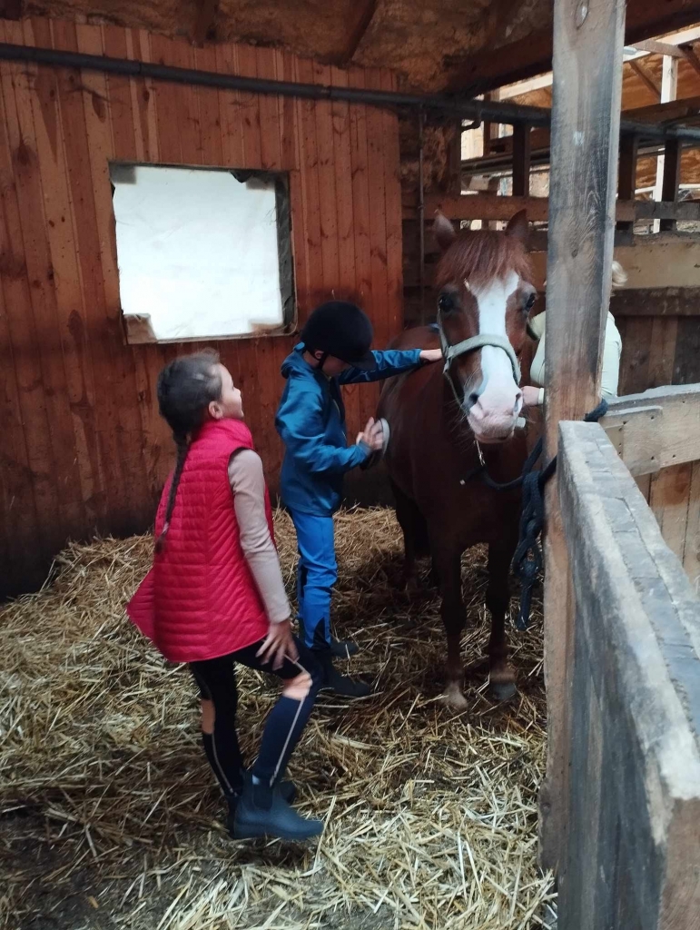 Uczniowie z zadowoleniem i wielkim zainteresowaniem oglądali stajnie i boksy, w których znajdowały się zwierzęta. Dowiedzieli się, w jaki sposób o nie dbać, karmić oraz utrzymać w dobrej kondycji i zdrowiu. Po obejrzeniu koni nastąpiła przejażdżka pod okiem instruktorek. . Wycieczka zakończyła się ogniskiem i meczem piłki nożnej. Był to nie tylko edukacyjny wyjazd, ale również integrujący dzieci poprzez wspólną zabawę.
