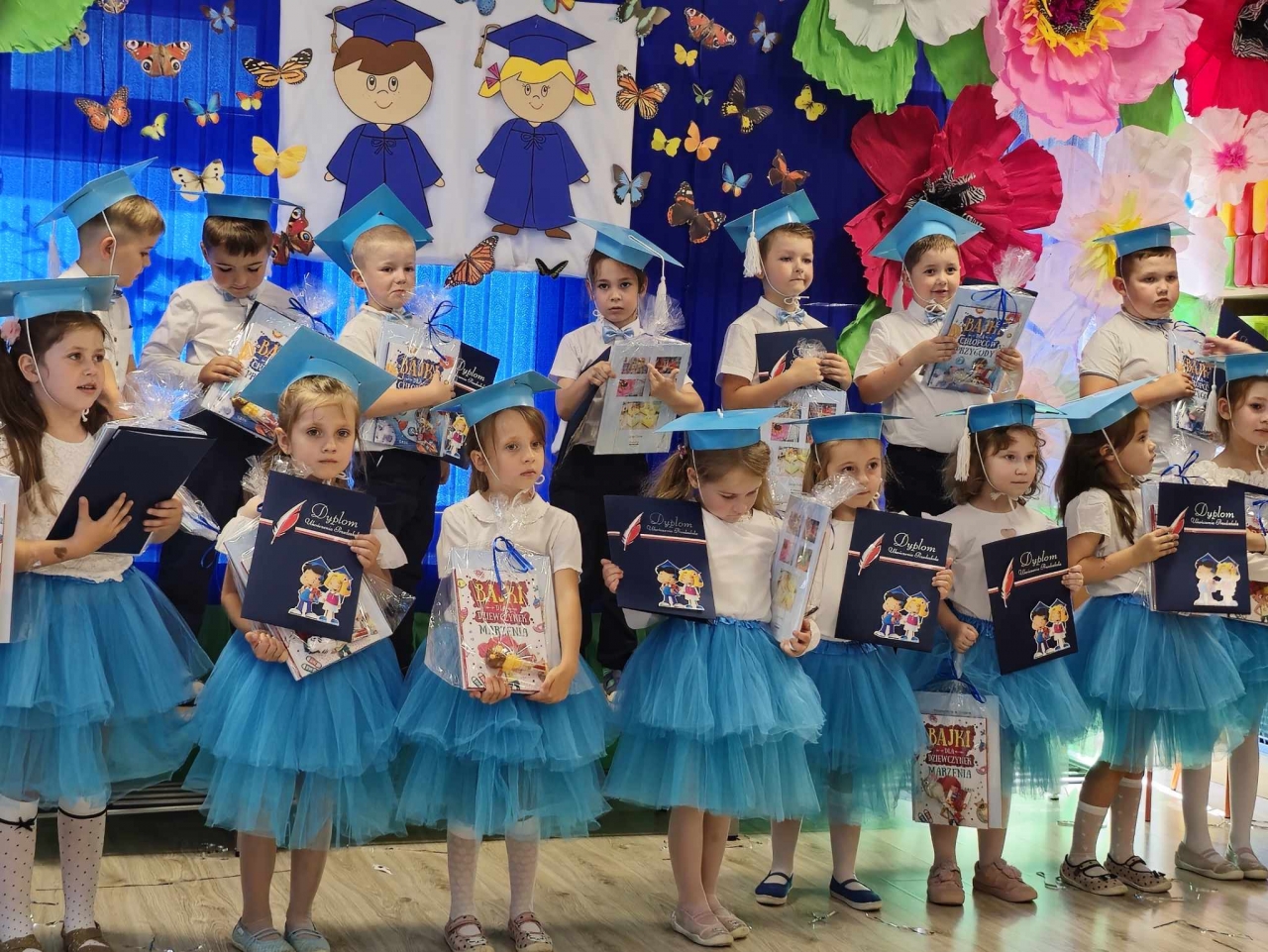 19 oraz 20 czerwca dzieci z najstarszych grup zerówkowych pożegnały przedszkole. Po wakacjach rozpoczną kolejny rozdział swojej edukacji: sześciolatki będą już uczniami klasy pierwszej. Z tej okazji przedszkolaki pod kierunkiem pań wychowawczyń przygotowały występy artystyczne. Na pamiątkę tego wydarzenia dzieci otrzymały dyplomy oraz nagrody książkowe. Życzymy im powodzenia na kolejnym etapie edukacyjnym i samych sukcesów w szkole, a wcześniej cudownych wakacji.