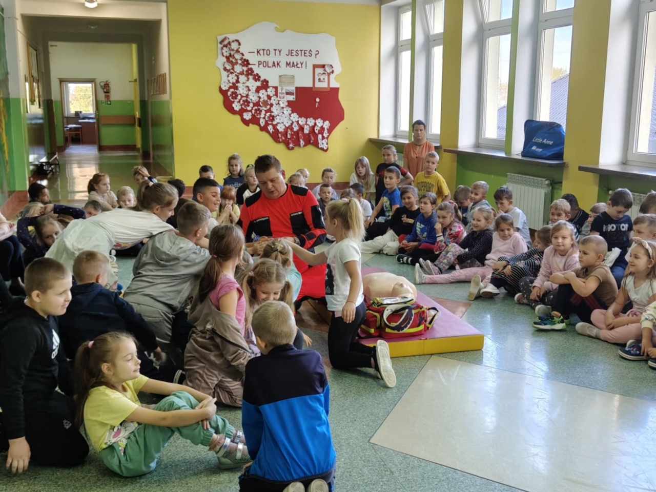 22 października klasy 0-III oraz IV-VI uczestniczyły w spotkaniu z Ratownikiem Medycznym w ramach programu „Ratujemy i uczymy ratować". Podczas tego spotkania dzieci poznały procedury zachowania się w sytuacjach zagrożenia życia. Mogły samodzielnie wykazać się praktyczną umiejętnością udzielania pierwszej pomocy.