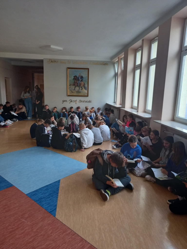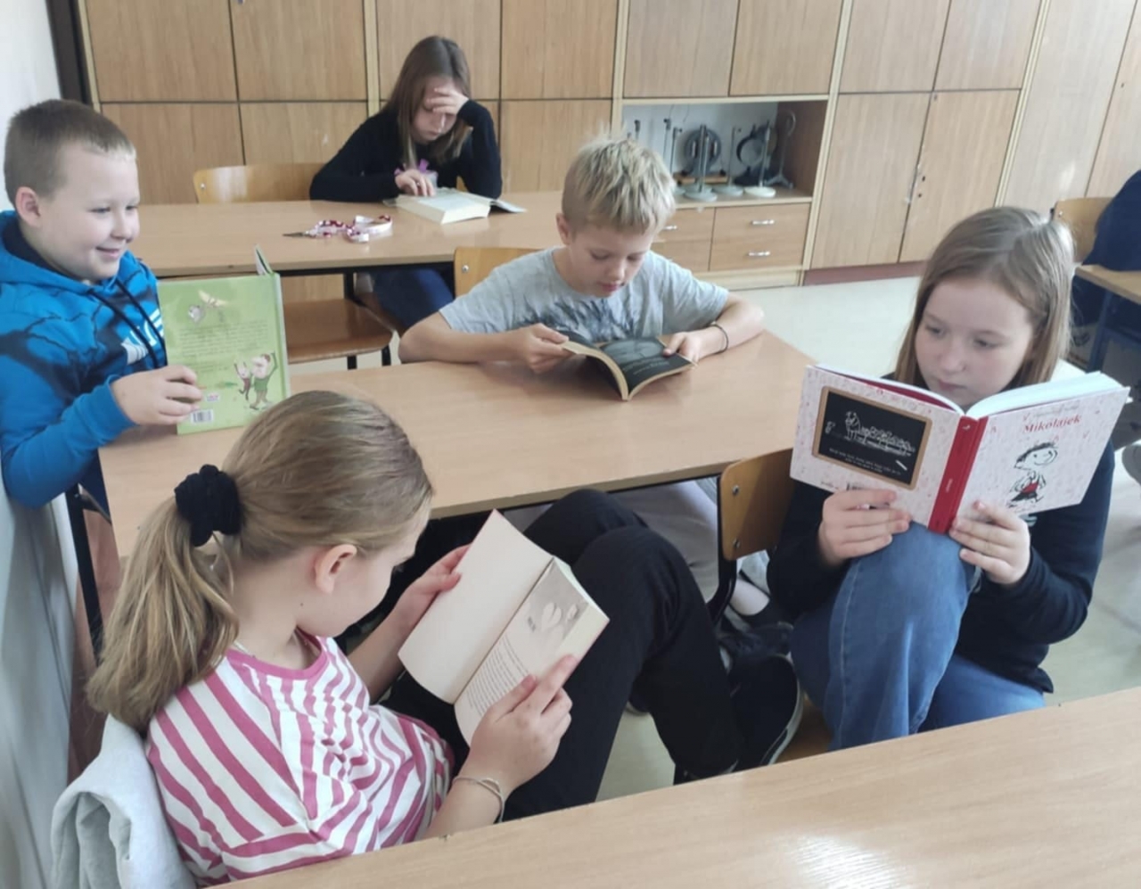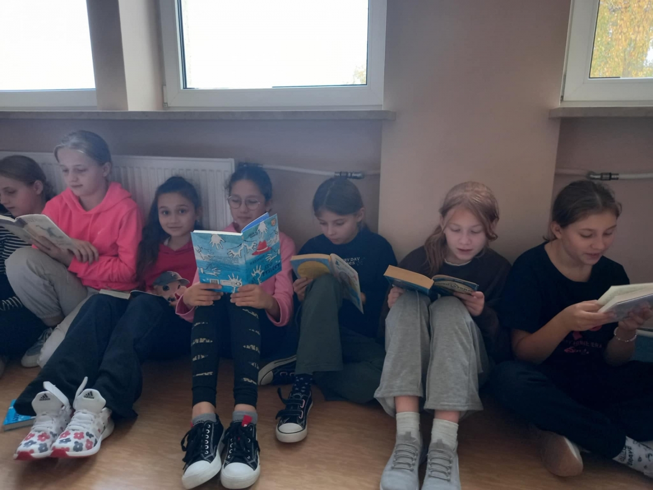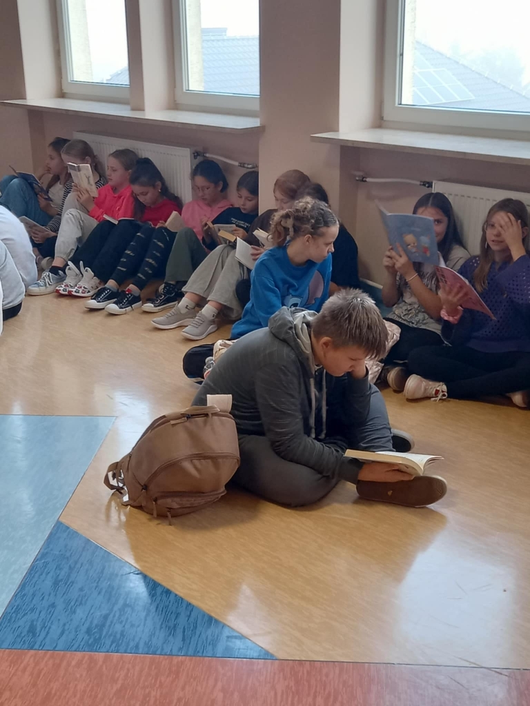 Podczas akcji uczniowie czytali swoje ulubione książki, które przynieśli z domu, lektury szkolne lub książki wypożyczone z biblioteki.