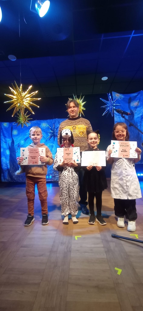 Recytacja wierszy odbywała się w grupach. Były to duety lub trójki. Z naszej szkoły w turnieju wzięli udział nasi najmłodsi koledzy i koleżanki z oddziału przedszkolego: Kaya Bouajilla, Alicja Mróz, Jan Chudek i Ksawery Dziak.