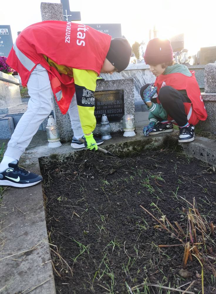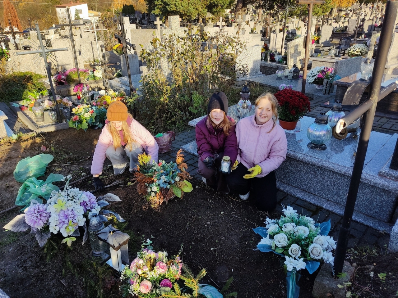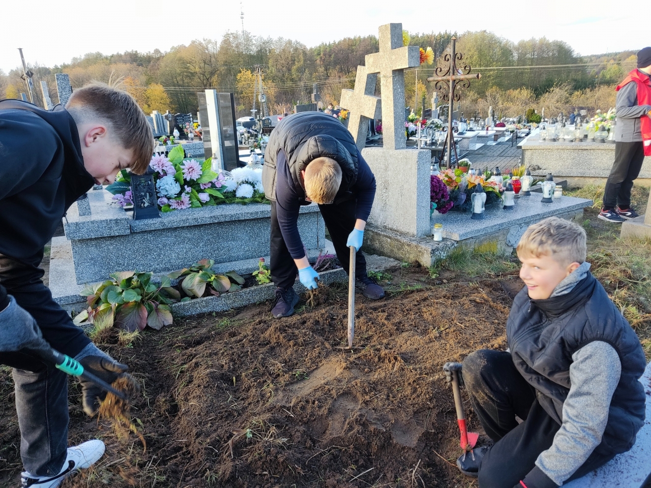 W miniony piątek, tuż przed uroczystościami Wszystkich Świętych i Dnia Zadusznego, młodzież naszej szkoły zrzeszona w Szkolnym Kole Caritas, pod opieką ks. Roberta, postanowiła uporządkować zaniedbane groby na naszym parafialnym cmentarzu.