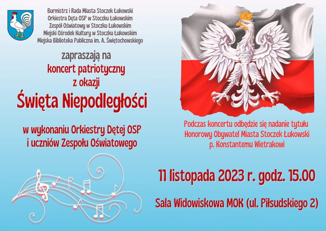 Serdecznie zapraszamy na koncert patriotyczny z okazji Święta Niepodległości