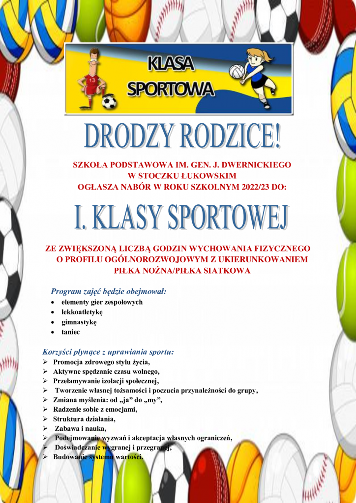 NABÓR DO I. KLASY SPORTOWEJ W ROKU SZKOLNYM 2021/2022