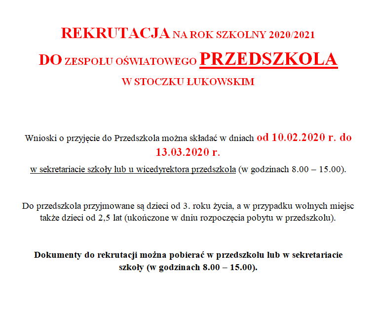 Rekrutacja do przedszkola na rok szkolny 2020/2021